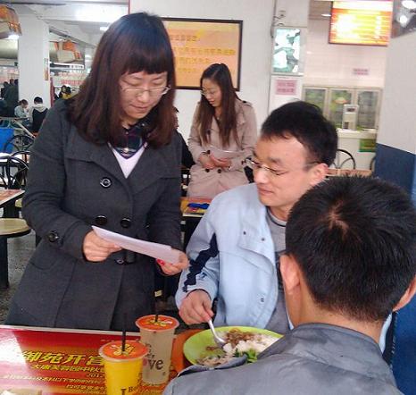 为弘扬中华民族勤俭节约的传统美德,认真践行党的十八大精神,4月9日中午,我院研究生党支部走进校园食堂,开展以“珍惜粮食,从我做起”为主题的党日活动。