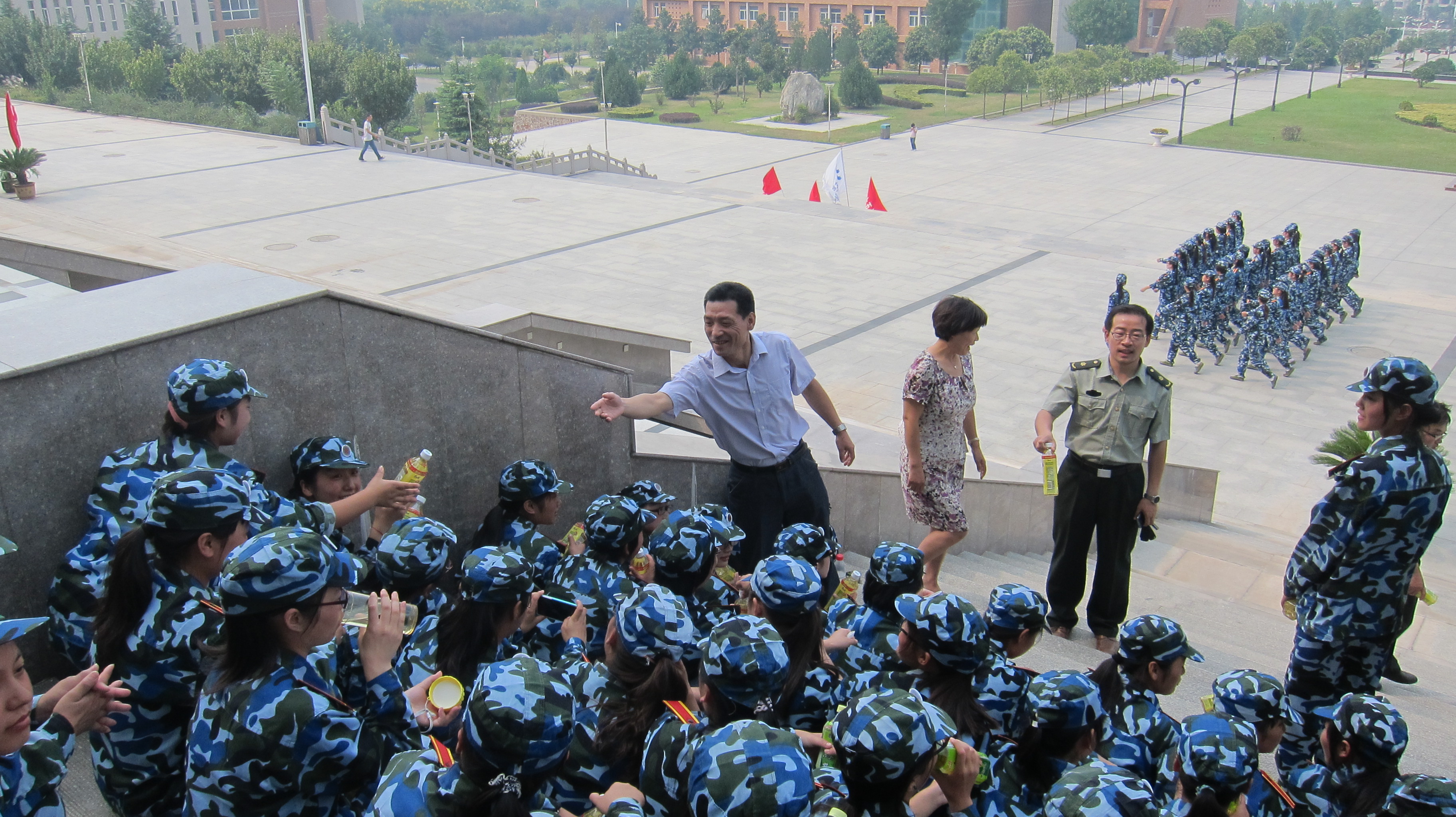 9月3日中午,人文学院领导深入2013级学生军训团慰问。