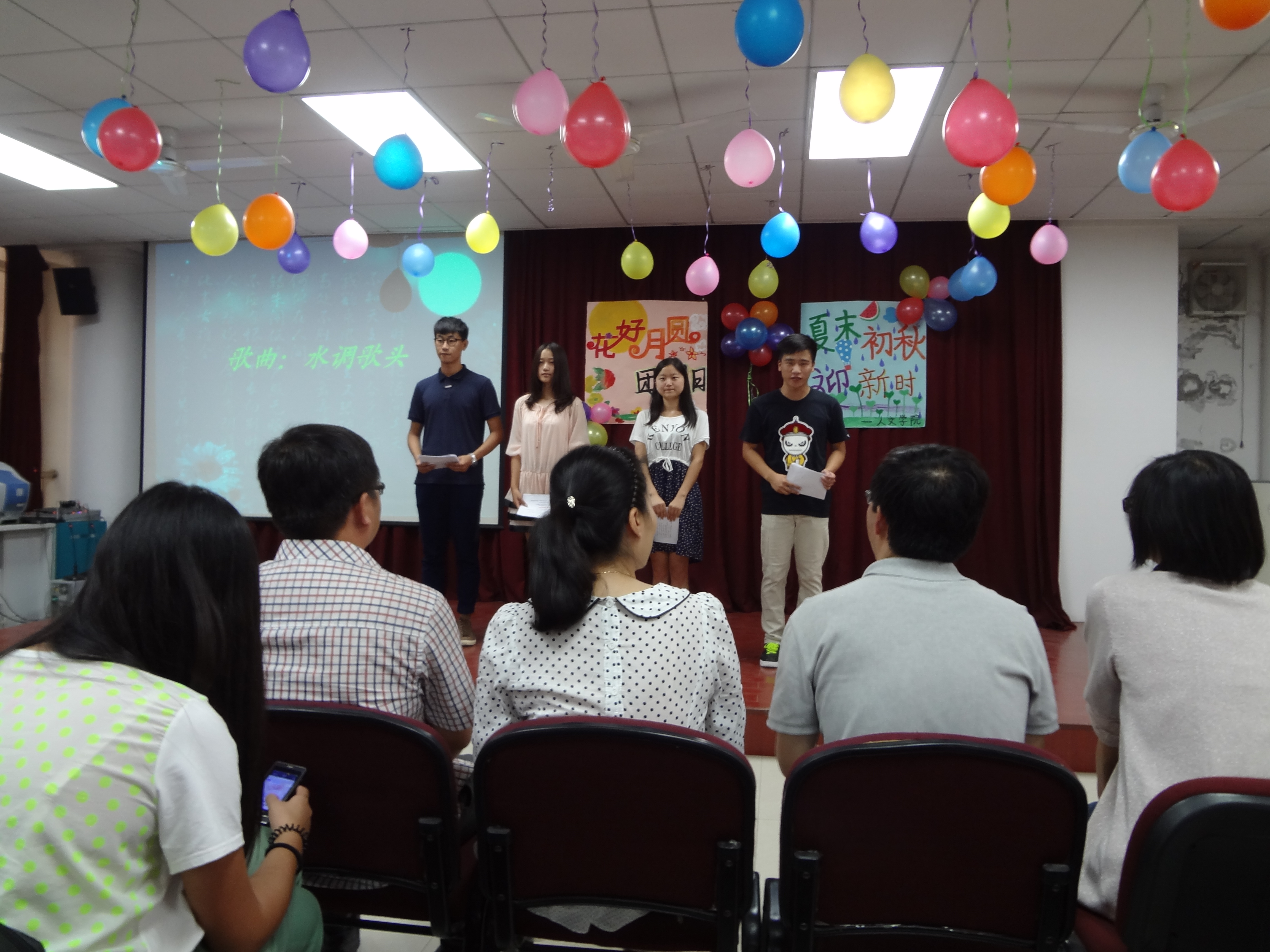 2013年9月17日晚,人文学院在人文楼模拟法庭举办了2013年迎新暨中秋晚会。