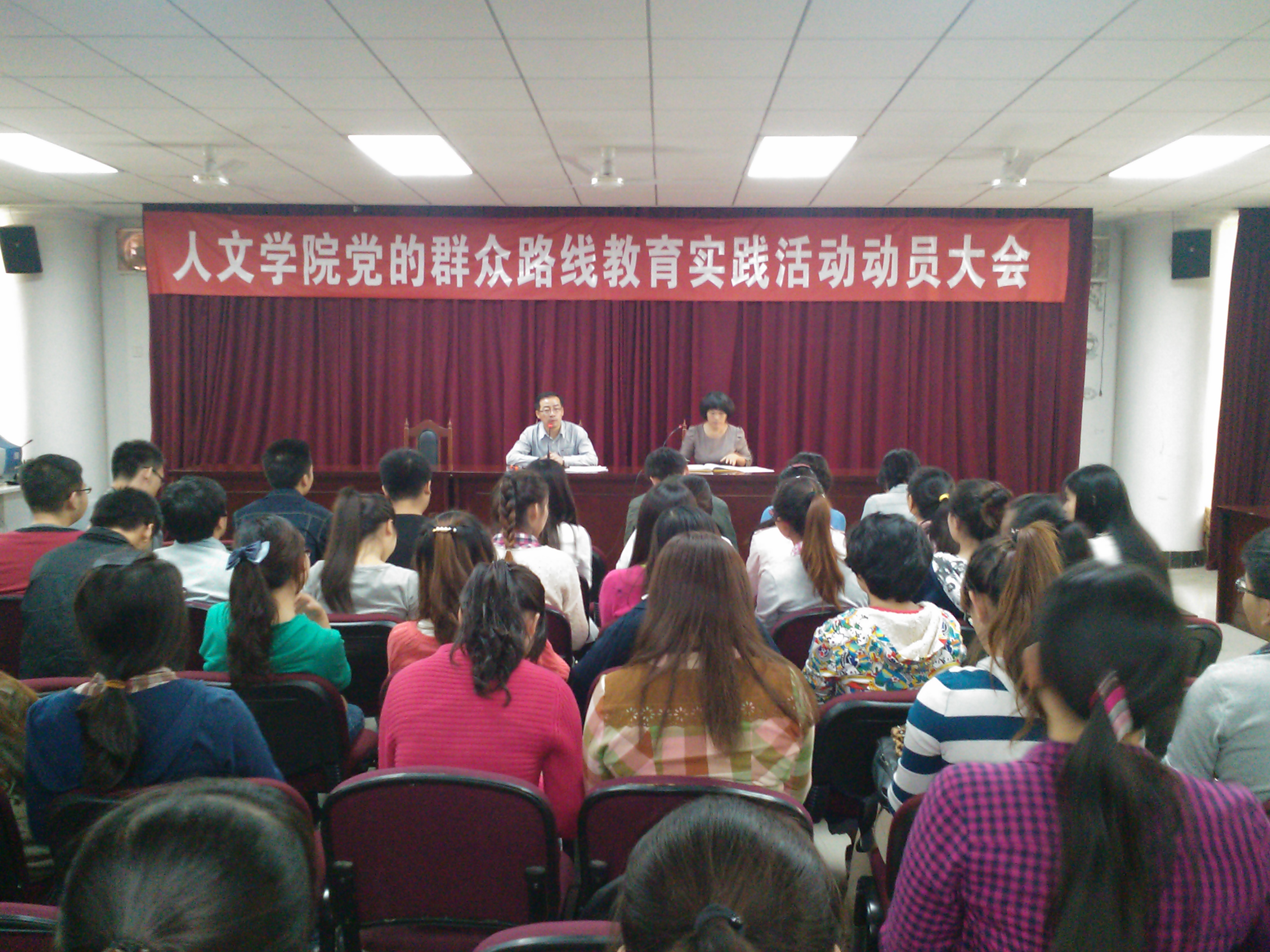 9月25日,人文学院在临潼校区人文楼模拟法庭召开了党的群众路线教育实践活动动员大会,人文学院党总支书记徐利兰、副书记付刚、各学生支部书记和全体学生党员参加了大会。