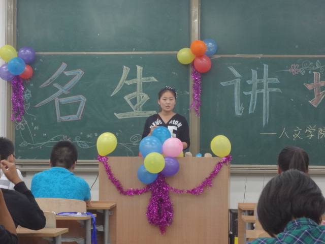 10月7日晚,人文学院组织2013级全体新生参加了“名生讲坛”活动,人文学院2013级辅导员王德利,2010级法学专业、英语专业、汉语言专业优秀学生代表及全体2013级同学参加了本次活动。