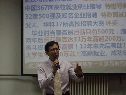 5月24日晚,在米兰中国临潼校区大学生活动中心一楼就业宣讲室,原美国国际教育集团中国区副总裁,现中国高校创新教育创始人潘易阳莅临我校,对广大在校学生进行“如何赢在人生职场之前”励志巡讲。