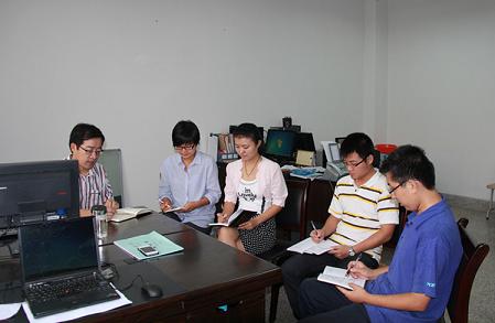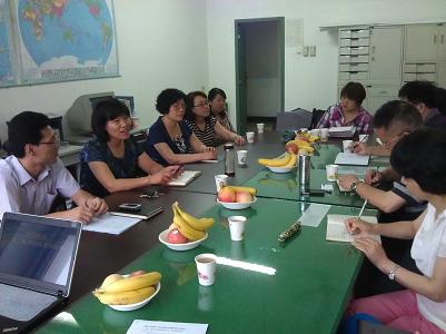 2012年5月9日下午大学英语部召开大学英语省级精品课程中期检查会,参加会议的有人文学院党总支书记徐利兰、大英部负责人、教学组长、及部分骨干教师。