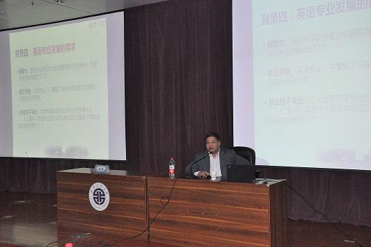 首先,樊增禄副校长致辞。他代表我校向参加本次复赛的选手和指导教师表示热烈的欢迎,并预祝各校的参赛选手取得优异成绩、大赛和学术研讨会圆满成功。接着,杨跃教授发表讲话,他希望选手在竞赛中有所收获、有所提高,希望各高校参会老师能在学术研讨会中有所收获,提高科研教学能力。随后,由荆运闯、李庆明分别介绍了本次大赛的宗旨及流程、评委构成、评分过程和标准。李庆明向在座参赛选手保证评阅工作将遵循公平、公正的原则。开幕式结束后,杨跃教授作了题为“英语专业人才培养新模式”的学术报告。