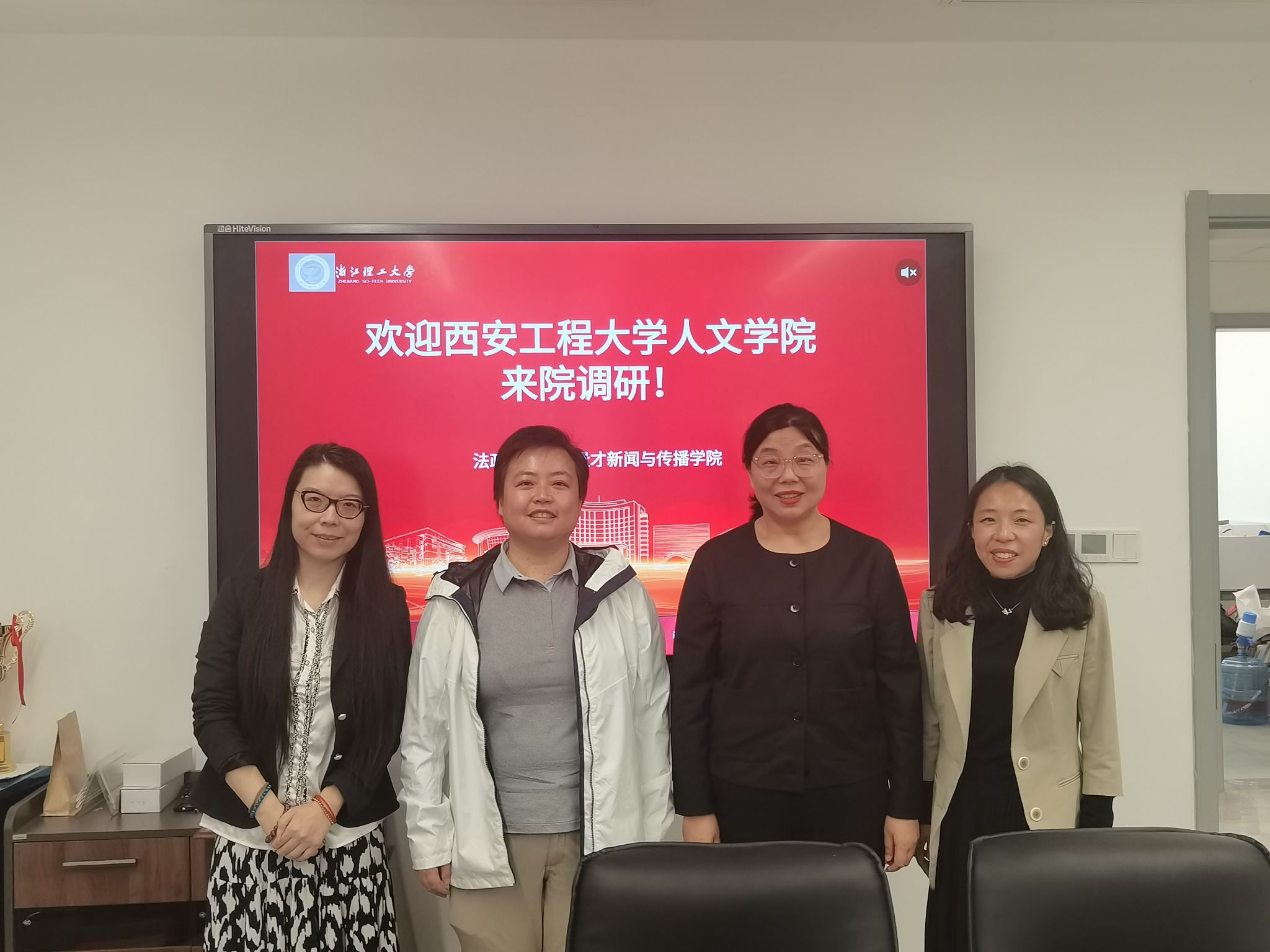 10月21日,副院长何芳与法学系主任万丽丽赴浙江理工大学法政学院调研,了解其学科建设尤其是时尚法学科方向发展情况。浙江理工大学法政学院法学系胡瓷红主任介绍了该校法学学科“3+1”发展模式,“3”即反垄断法、时尚法和数据法三个专业方向,“1”即涉外法治人才培养模式,即在三个专业方向的基础上培养涉外法治人才,重点介绍了时尚法的发展历程、建设方式、措施和成果,展示了浙江理工大学法学学科在服务地方、服务社会、助推学校发展方面的积极成效,分享了“以赛促学、以赛促教”的宝贵经验。法政学院李子瑾副院长介绍了学院的特色课程群建设、学术交流和学术会议开展情况以及协同育人实践情况,强调了实践课程群建设的成功经验。