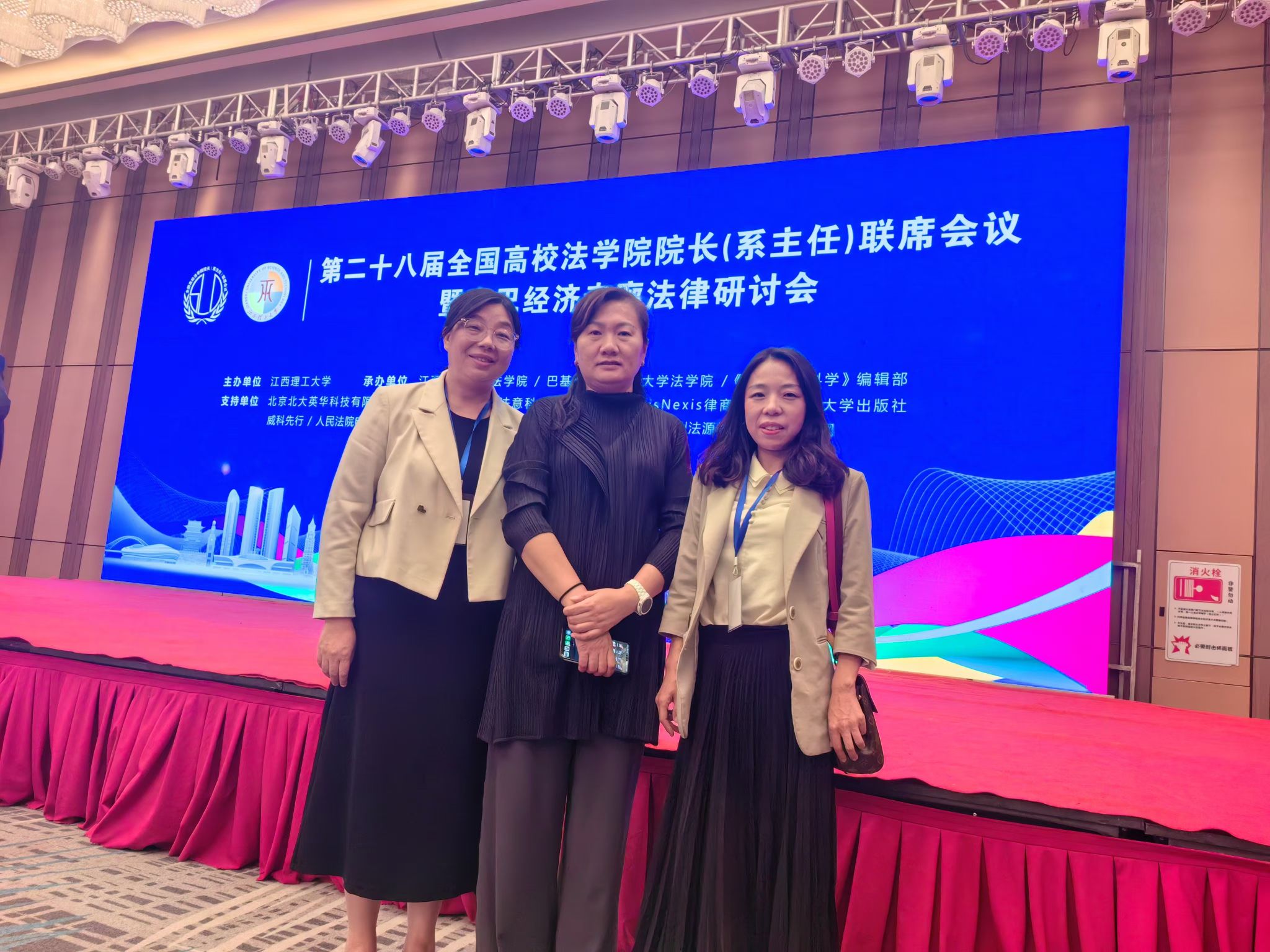 10月26日,张克英、何芳和万丽丽赴江西理工大学参加了第二十八届全国高校法学院院长(系主任)联席会议暨中巴经济走廊法律研讨会并开展法学学科建设和专业建设调研。武汉大学、同济大学、重庆大学、上海外国语大学、华东政法大学、西南政法大学等国内100多所高校的法学院院长(系主任)、法律工作者以及来自巴基斯坦的200余人参加。与会专家学者围绕“法学专业课程思政建设及实践”“法学院校与实务部门协同育人模式及其实践”“涉外法治人才培养”“法学人才分层分类培养”等议题进行深入交流探讨。张克英主持分论坛“涉外法治人才培养”,何芳参加“法学院校与实务部门协同育人模式及其实践”和“法学人才分层分类培养”论坛,万丽丽参加“法学专业课程思政建设及实践”论坛。通过会议提供的学习和交流平台,调研组汲取了其他兄弟院校的宝贵经验,更加深刻认识到人才培养工作的重要性和紧迫性。