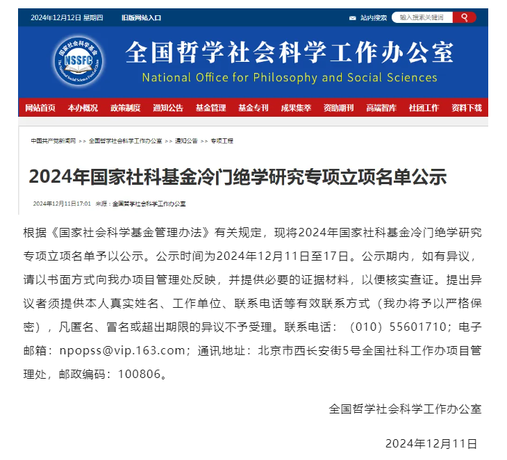 此次全国共有77个项目获批冷门绝学研究专项个人项目,我省共有4个项目在列。国家社科基金冷门绝学研究专项重点支持对国家发展、文明传承、文化安全具有重要意义或填补空白价值的冷门绝学,旨在加强冷门濒危学科的抢救性保护和文化遗产传承的学术研究,确保具有重要文化价值和传承意义的绝学、冷门学科有人做、有传承。这也是我校AC米兰中文第二次获批冷门绝学研究项目。