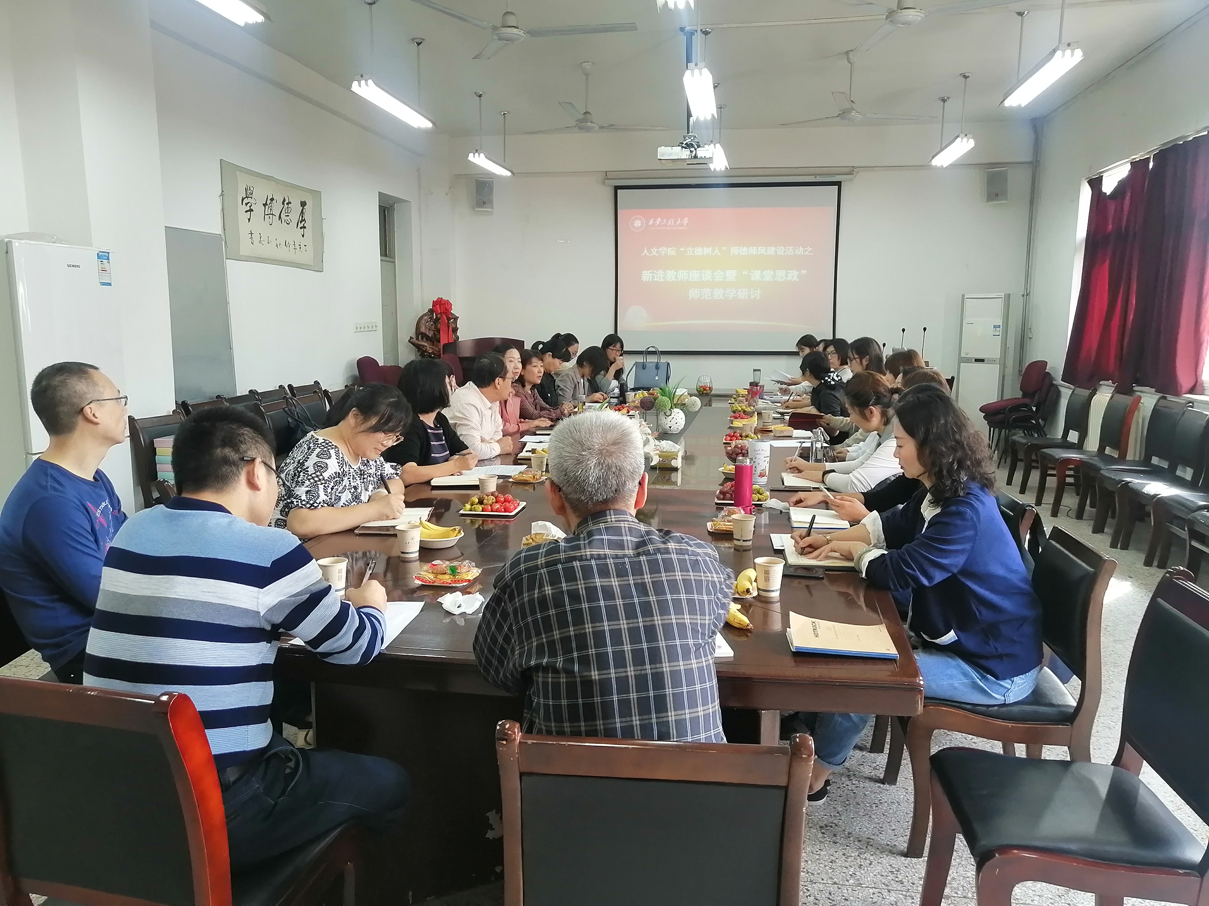 随后,五位新进教师交流了自己近期的工作以及对工作的感想,并就“课程思政”的相关问题进行了交流,纷纷表示很高兴加入和谐、友爱的人文大家庭,今后积极加入学院相关课题研究中,积极承担学院的课程,向有经验的教师学习,立德树人,以良好的师德师风培育学生。