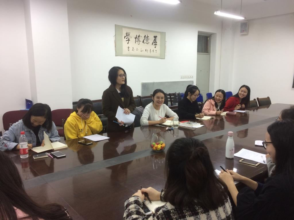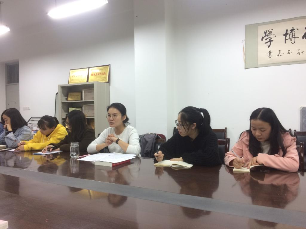 11月7日18:30,人文学院学生第三党支部全体十八名党员在人文楼会议室共同学习十九大精神,本次党日活动由党支部书记刘婷婷担任主持。