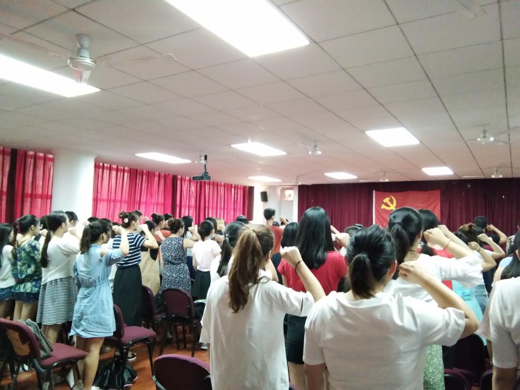 为庆祝建党96周年,推进“两学一做”常态化,6月30日,人文学院在临潼校区模拟法庭举行了庆祝建党96周年暨推进“两学一做”常态化表彰大会。人文学院党委书记徐利兰、党委委员郭欣欣、学生第一支部书记周晓惠、学生第二党支部书记王德利、学生第三党支部书记刘婷婷、学生第四党支部书记李斌斌及人文学院全体学生党员参加了本次大会。大会由学生第三党支部书记刘婷婷主持。