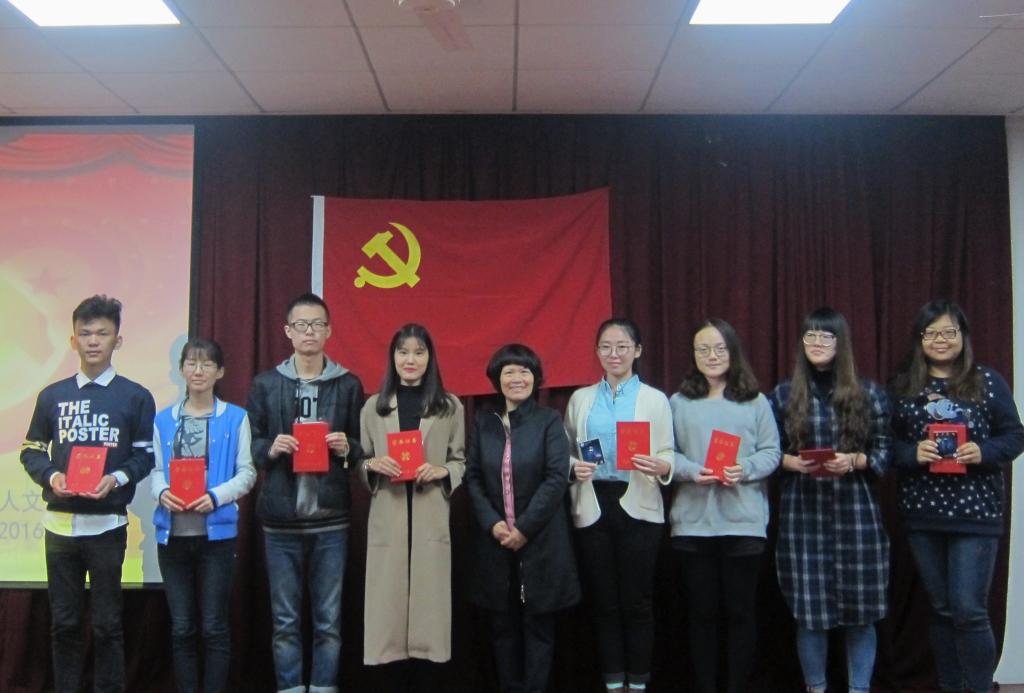 大会在国歌声中正式开始。首先,郭欣欣宣读了我院深入开展“两学一做”学习教育活动期间获得各类奖项的优秀学生党员、党章党规知识答题优秀党员及优秀学习党小组的名单,并对其进行表彰,她希望我院在座的85名学生党员以此为契机,从思想、认识及行为各方面得到提升和升华,树立榜样。随后,优秀学生党员代表13级英语专业蒲悦,优秀学习小组代表13级汉语国际教育专业李玉镇交流学习经验,分享了在“两学一做”学习教育活动中的切身体会。会上,徐利兰发表了重要讲话,她总结了我院党委上一阶段开展“两学一做”的学习教育情况,并对本科教学评估工作做了动员,结合幻灯片就评估工作审核的流程、内容、涉及的学校相关部门及人员向与会学生党员做了介绍,强调在迎接本科教学评估工作的同时要继续深入学习习近平总书记“七一讲话”的重要精神,任何工作、任何情况都要发挥党员的先锋模范作用,尤其是学生党员。她希望大家要保持纪律、积极行动,以饱满的精神状态迎接本科教学评估,以个人的优秀推动学校的发展,推动高等教育的进步。随后,徐书记立足于上一阶段我院“两学一做”学习情况,以“不忘初心,继续前行”、“面对挑战,重视工作”两条线索为脉络,分八个层次对习近平总书记“七一讲话”的重要精神做了详细阐释。徐书记还结合实例向在座学生党员生动讲述我党自开展“两学一做”学习活动以来在人民群众中取得的丰硕成果,并要求大家时刻坚持理想和信念、牢记“四个全面”、“三严三实”和“四个自信”,保持党的纯洁性。最后,她再次对本次获表彰的学生党员表示祝贺,对他们所取得的成绩表示肯定,鼓励大家要“以学为主,兼容别样”,以自己的实际行动迎接本科教学评估工作。大会结束后,全体与会党员在学生第三党支部书记刘婷婷的带领下,重温入党誓词并合影留念。