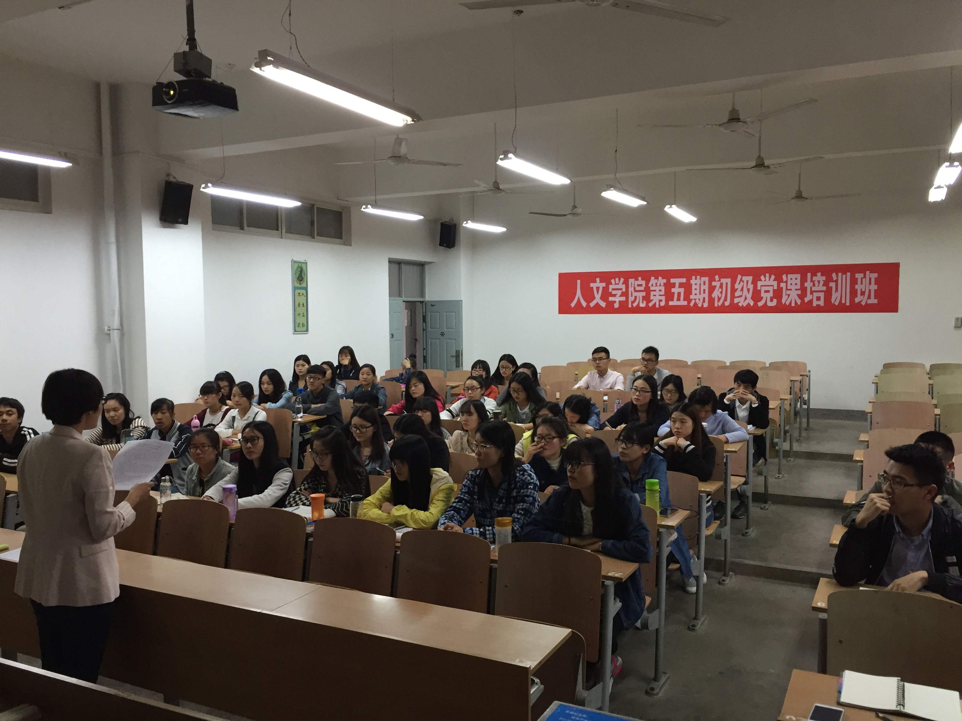 人文学院初级党课培训班自开办以来始终坚持正面教育为主,用科学理论武装头脑,做到培养学用结合,知行合一的共产主义接班人。本次党课按照“创新方式讲好党课”,党支部书记、党委班子成员结合实际带头讲学院入党积极分子初级党课的思路,注重运用身边事例、现身说法,强化主题、答疑释惑,增强党课的吸引力和感染力。力争让每位参加培训班的同学对党的理论知识有更为细致的掌握,将理论学习落到了切实的生活学习中。对于同学们今后的理论提高及学习生活有着积极的意义。