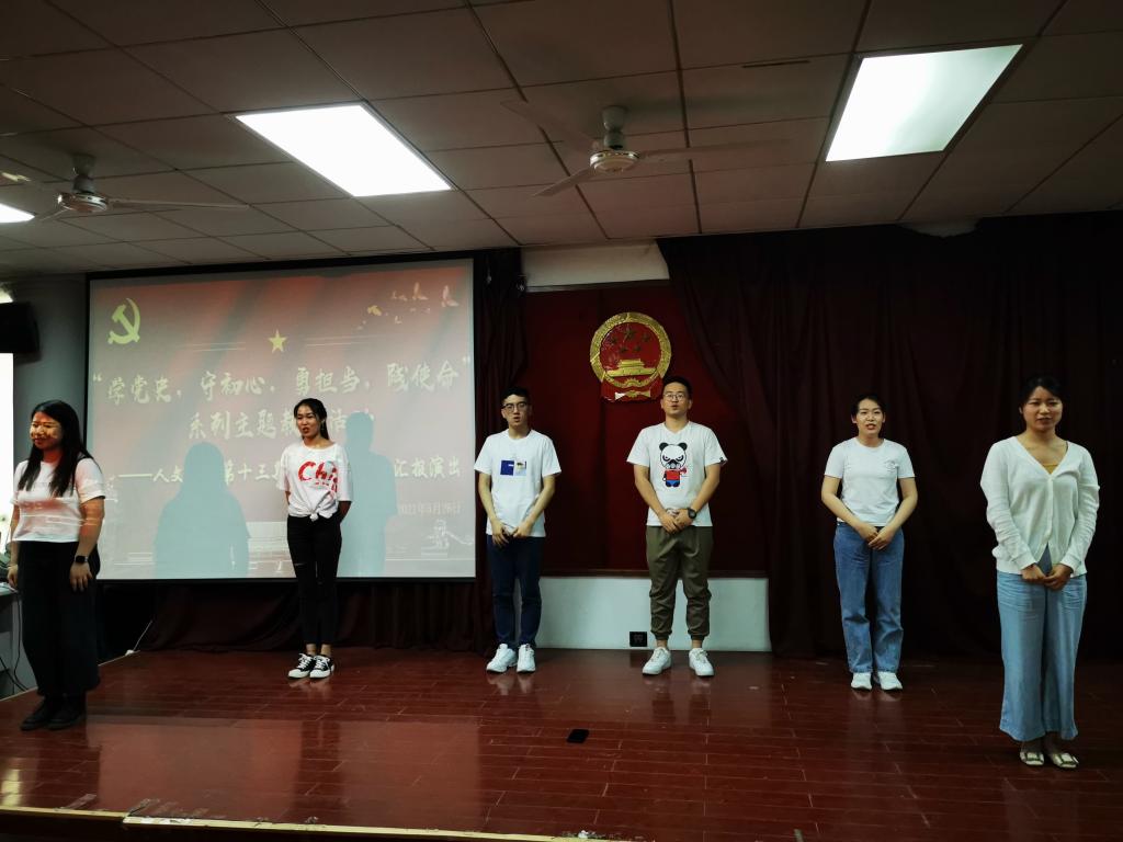历史风云激荡,红旗招展如画,在实现中华民族伟大复兴的征程上,我们即将迎来中国共产党一百周年华诞。为总结和展示党课教育成果,5月26日下午,人文学院在临潼校区模拟法庭举办“学党史、守初心、勇担当、践使命”系列主题教育活动暨第十三期院级党课结业汇报演出。人文学院党委书记徐利兰,党委副书记郭欣欣,全体学生党支部书记和第十三期院级党课全体学员参加了汇报演出。