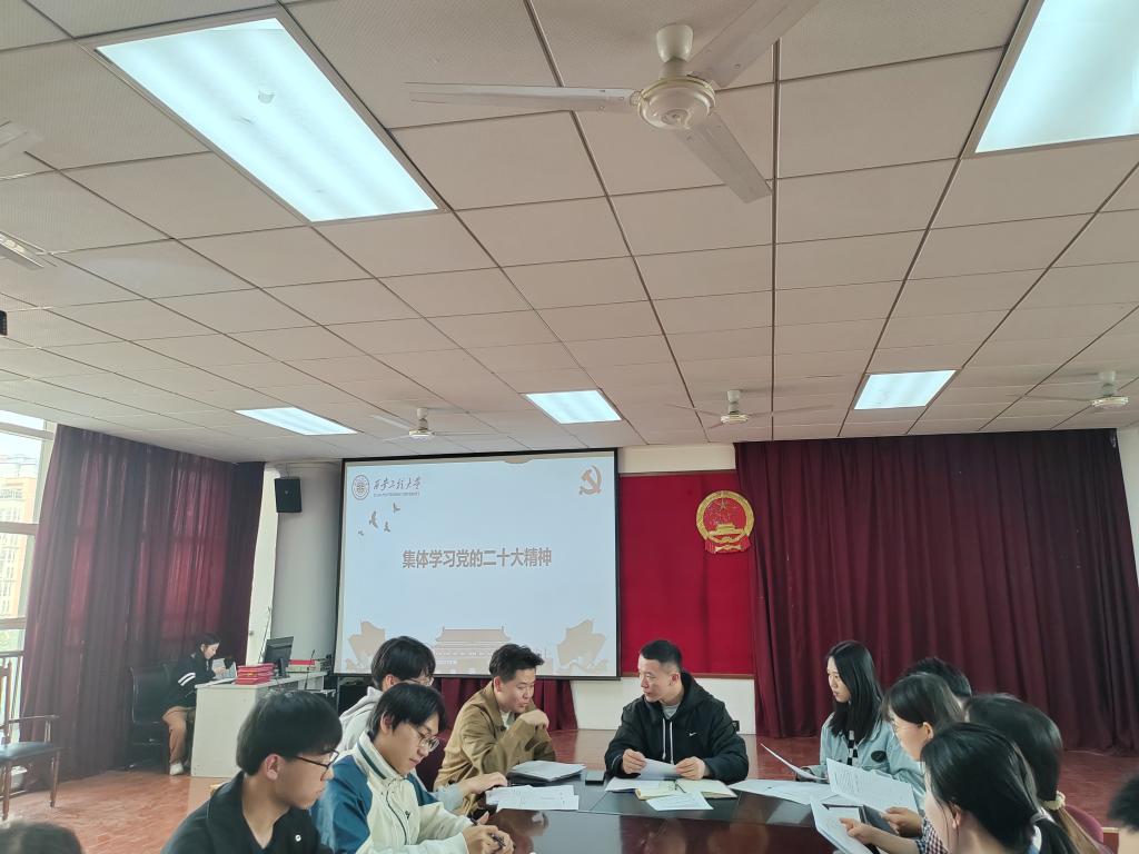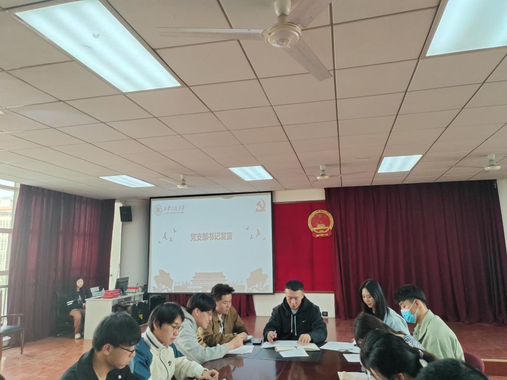 首先,支部全体党员集中学习了党的二十大精神。支部书记刘杨扬讲到党的二十大报告中对广大青年提出了“立志做有理想、敢担当、能吃苦、肯奋斗的新时代好青年”,充分体现了党对青年一代的殷切期待,为新时代的广大青年成长成才指明了努力方向。作为学生党员要牢记习近平总书记的嘱托,在党的领导下,强化责任担当,踔厉奋发、勇毅前行,在校园学习、工作、生活中发挥党员先锋模范作用,努力营造良好学风,塑造良好班风,团结同学、互帮互助,立志做有理想、敢担当、能吃苦、肯奋斗的新时代好青年。