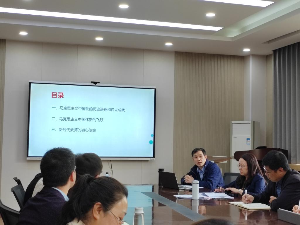 屈旻以“马克思主义中国化新的飞跃”为主题做了精彩讲授。屈旻首先回溯了马克思主义中国化百年光辉历程,指出中国共产党领导的革命、建设和改革的波澜壮阔历史进程和伟大成就,是我们党不断推进马克思主义中国化的丰硕成果。紧接着屈旻深刻剖析了习近平新时代中国特色社会主义思想的科学内涵与价值意蕴,指出习近平新时代中国特色社会主义思想实现了马克思主义中国化时代化新的飞跃,创造了新时代中国特色社会主义的历史性成就。最后,屈旻谈到了“新时代教师的初心和使命”,号召全体教师一定要坚守立德树人初心,担当教书育人使命,真正成为学生心中的“四有好老师”。