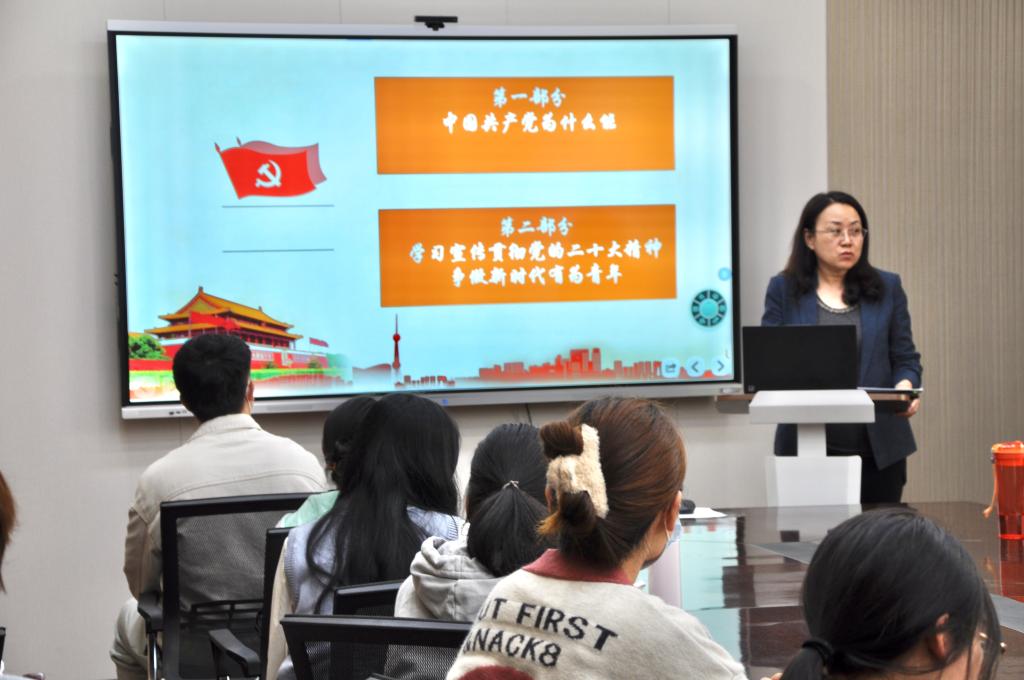 陈莉霞以《不忘来时路,奋进新征程》为主题,分别从两个部分进行讲述。第一部分从“中国共产党为什么能”的角度出发,讲述了中国共产党能够带领中国人民实现从站起来、富起来到强起来的伟大飞跃,创造让世界惊叹的“中国奇迹”,是因为中国共产党有科学的理论指导,坚定的理想信念,强大的组织优势、坚实的群众基础和自我革命的精神。正是依靠这些优秀特质,中国共产党成为始终走在时代前列、人民衷心拥护、勇于自我革命、经得起各种风浪考验、朝气蓬勃的马克思主义执政党。第二部分从“学习宣传贯彻党的二十大精神,争做新时代有为青年”出发,带领学员详细学习党的二十大报告,强调端正自身入党动机的重要意义。最后陈莉霞表示,作为新时代青年,要响应党的号召,把自己的人生目标同祖国、时代的命运联系起来,筑牢理想信念,笃行不怠。