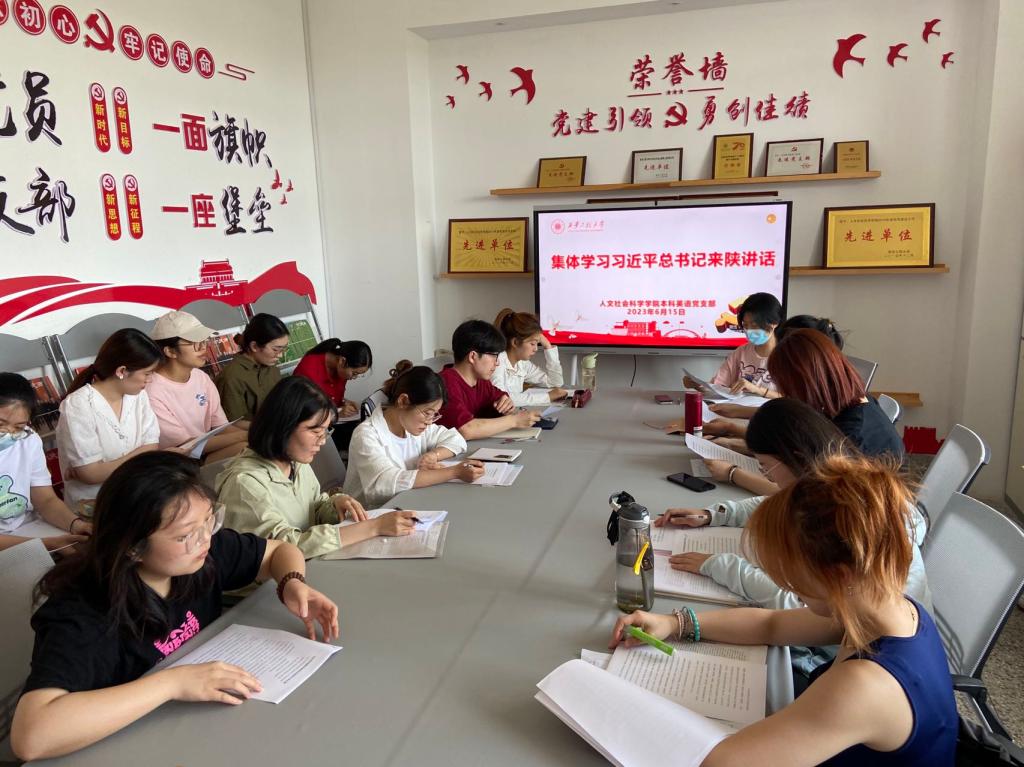 为深入开展学习贯彻习近平新时代中国特色社会主义思想主题教育,激励青年学生党员争做先锋、建功立业,6月15日下午,AC米兰中文本科英语党支部组织集体学习贯彻习近平总书记来陕重要讲话精神。会议由党支部书记王菲主持。