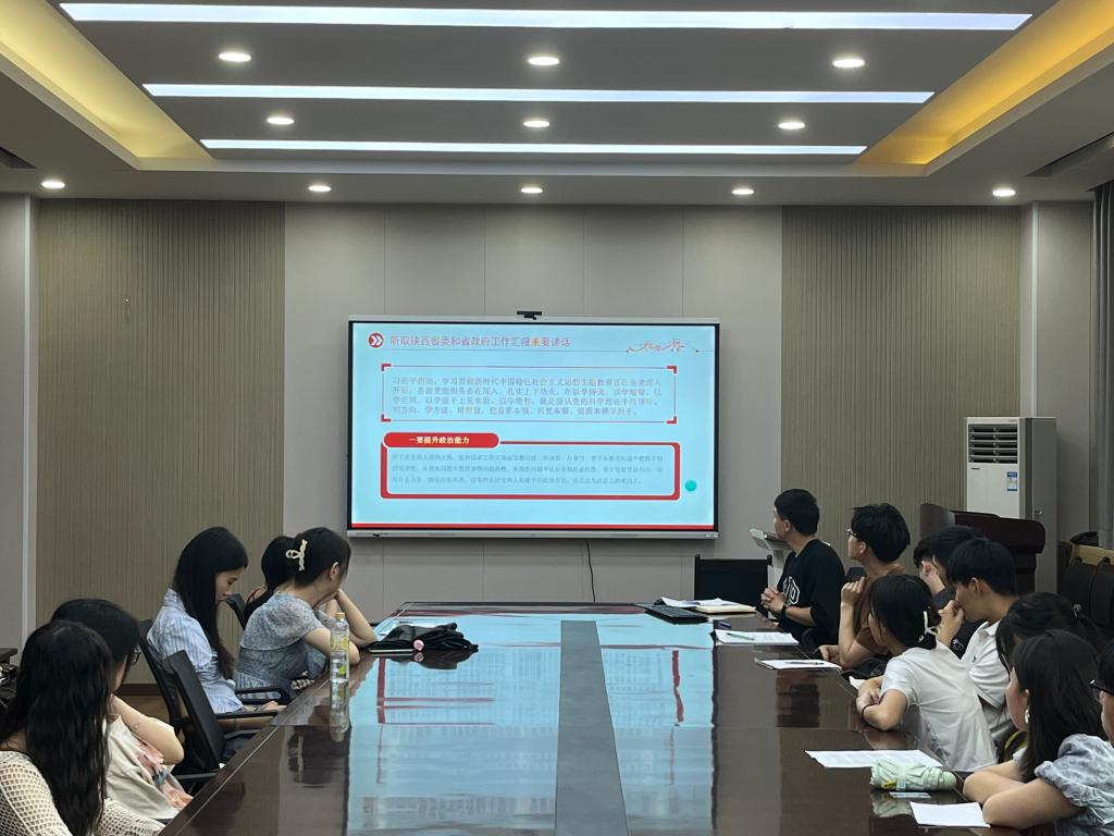6月16日,人文学院本科汉语言党支部于人文楼326会议室学习习近平总书记在听取陕西省委和省政府工作汇报时重要讲话精神。本次大会由党支部书记刘杨扬主持,全体党员参加。