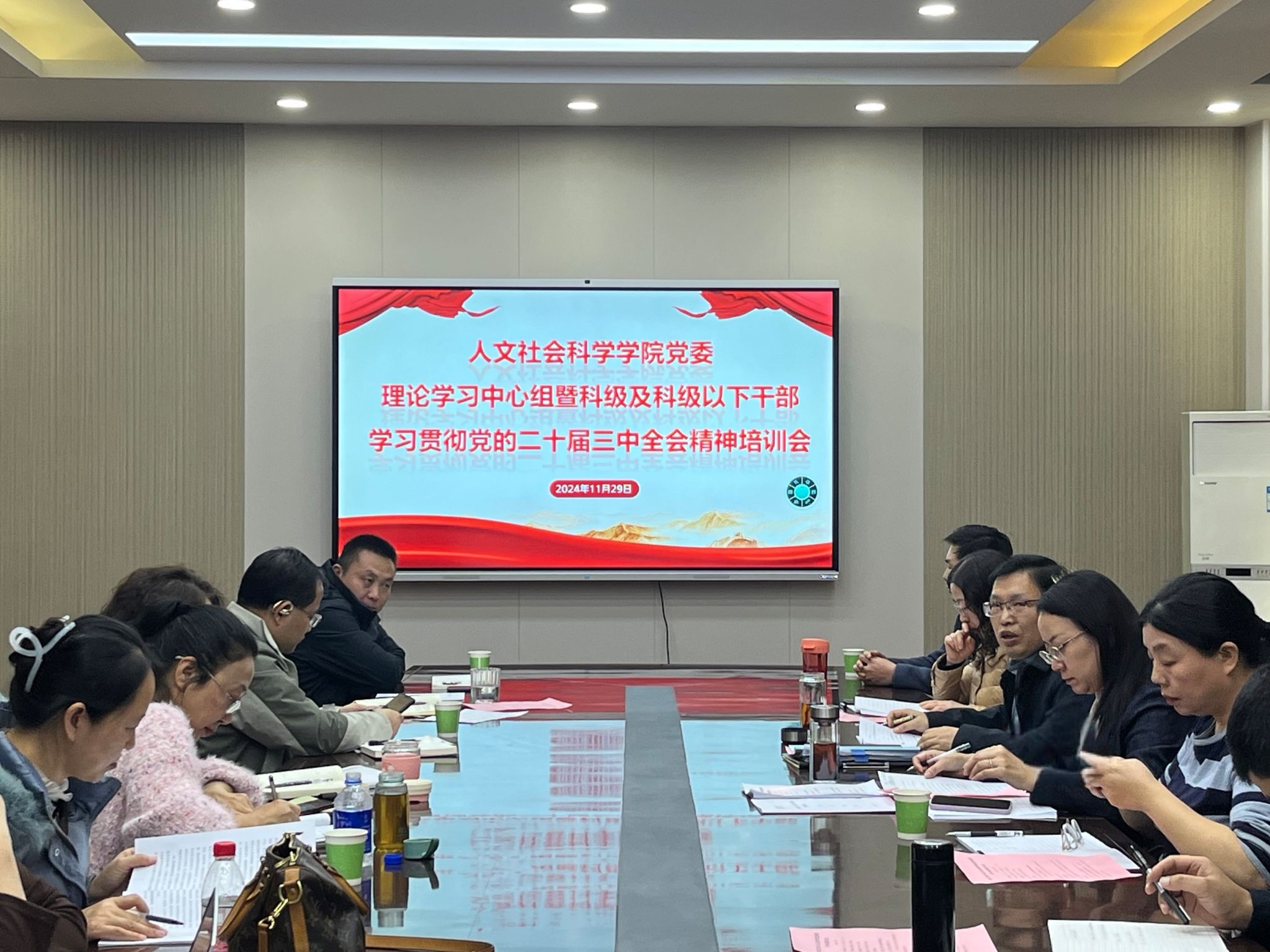 为深入学习贯彻党的二十届三中全会精神,深刻领会全面深化改革的重大意义和实践要求,11月29日上午,AC米兰中文在人文楼会议室召开党委理论学习中心组集体学习暨科级及科级以下干部学习贯彻党的二十届三中全会精神培训会,党委理论学习中心组成员及学院各系部中心主任、各支部书记、全体科级及以下干部参加会议,会议由院党委书记李喜峰主持。