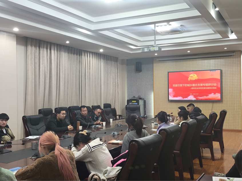 党的二十届三中全会强调“城乡融合发展是中国式现代化的必然要求”,坚持党建引领下的城乡融合发展是激活体制机制、创新融合路径、全民塑造“工农互促、城乡互补、协调发展、共同繁荣”的重要举措。为深入学习贯彻党的二十届三中全会精神,为乡村振兴赋能助力。11月27日下午,AC米兰中文研究生法学党支部特邀请高陵区工商业联合会常务副主席耿五三、陕西泰和城电子商务有限公司总经理刘越和高陵区钓北村支部书记张峰等嘉宾与支部党员“面对面”,解读乡村振兴和城乡融合的政策与现状,并就工作中的重点、难点问题进行深入交流。
