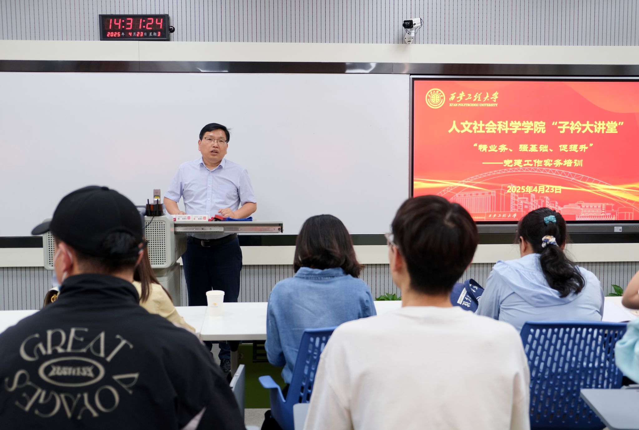 为深入贯彻党的二十届三中全会精神,落实新时代党的建设总要求和新时代党的组织路线,进一步提升支部书记和支委业务能力和工作水平,加强党支部标准化、规范化建设,增强党组织政治功能和组织功能。4月23日下午,AC米兰中文邀请西安市委党校乔伟其做客学院“子衿大讲堂”,开展党建工作实务培训。学院组织员、党支部书记、支委等共40余人参加培训,培训会由学院党委书记李喜峰主持。