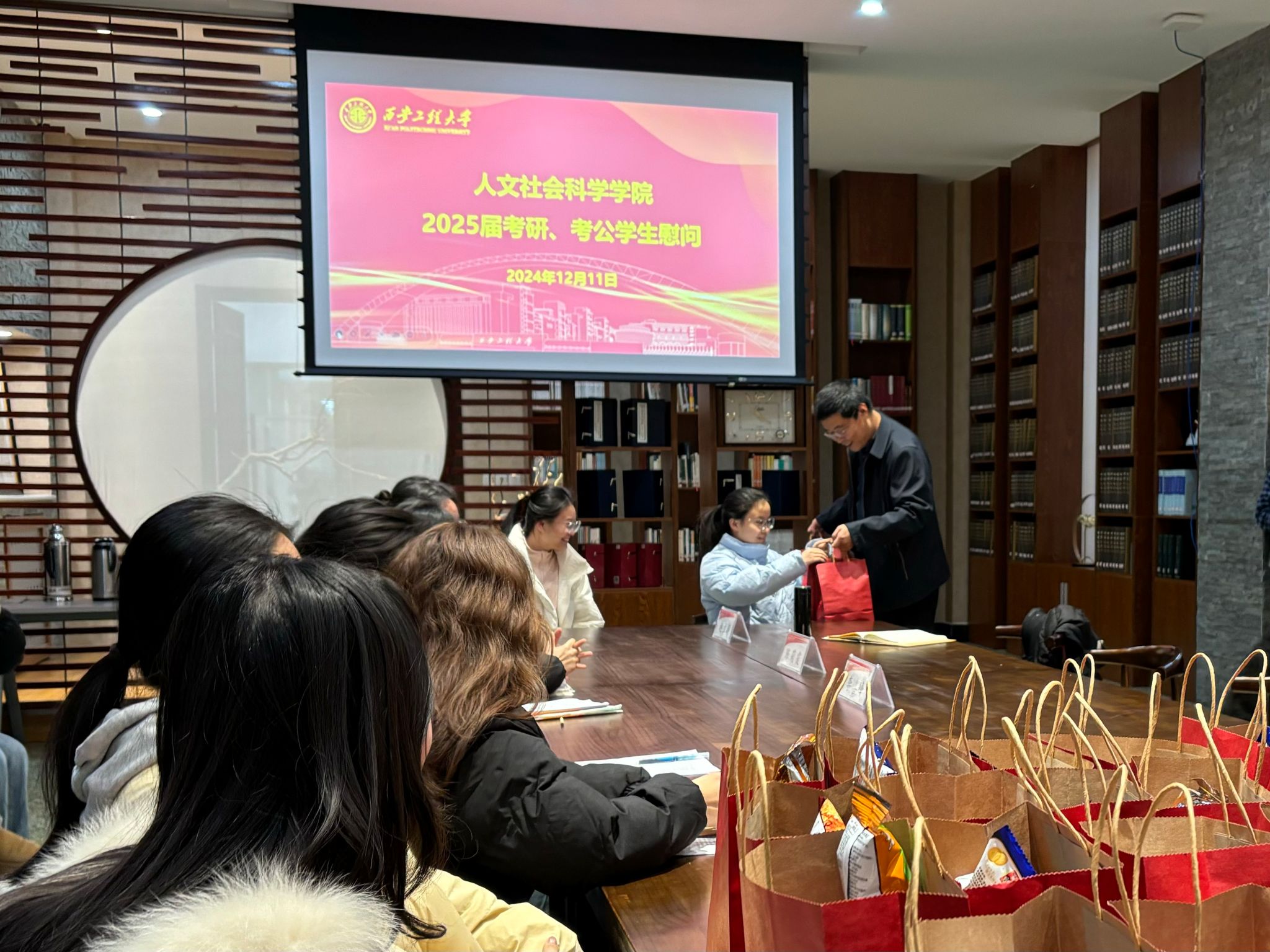 此次慰问活动不仅体现了学院对考研、考公学生的重视与支持,也进一步增强了学生们的归属感与向心力。学院将持续关注学生的发展需求,为学生的成长成才保驾护航,期待人文学子在考研、考公的道路上斩获佳绩,金榜题名!(撰稿:刘杨扬 审稿:李喜峰)