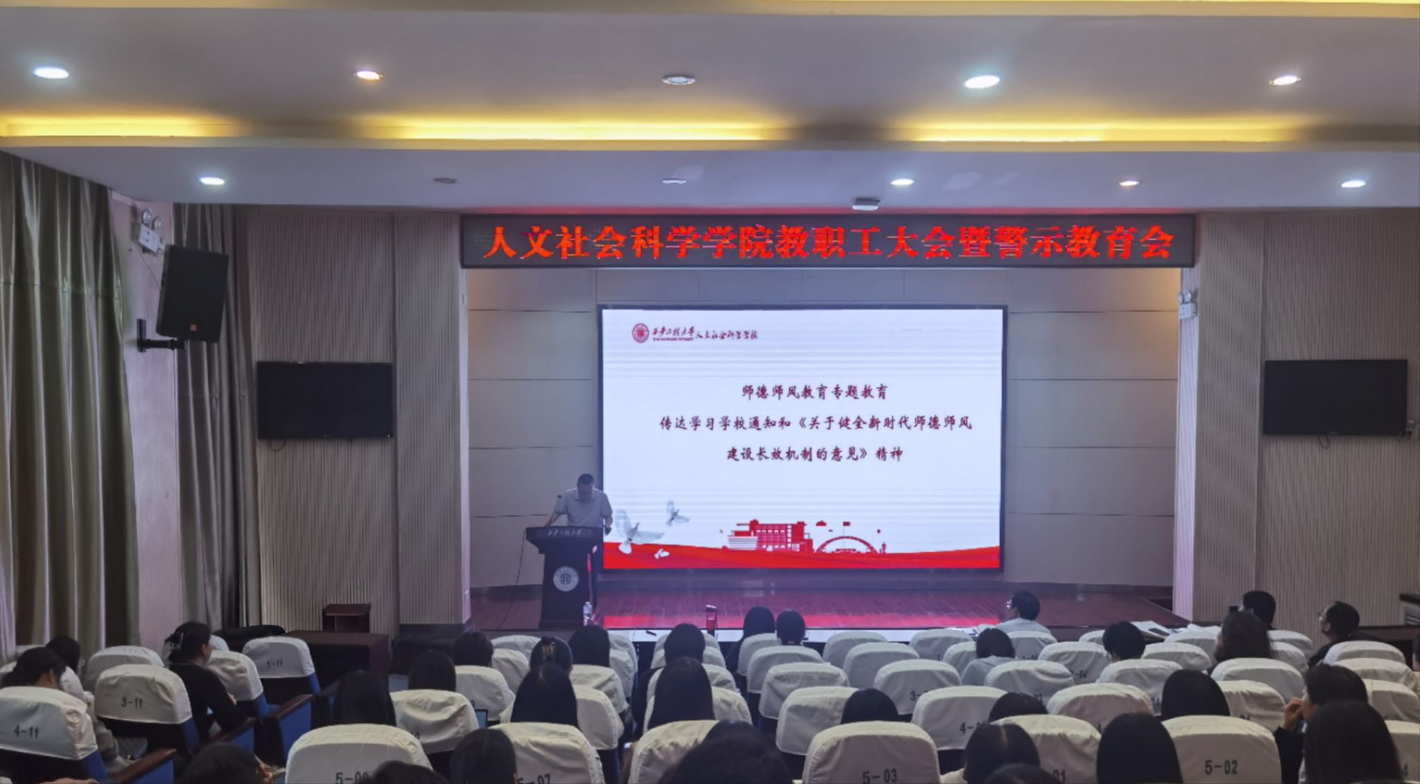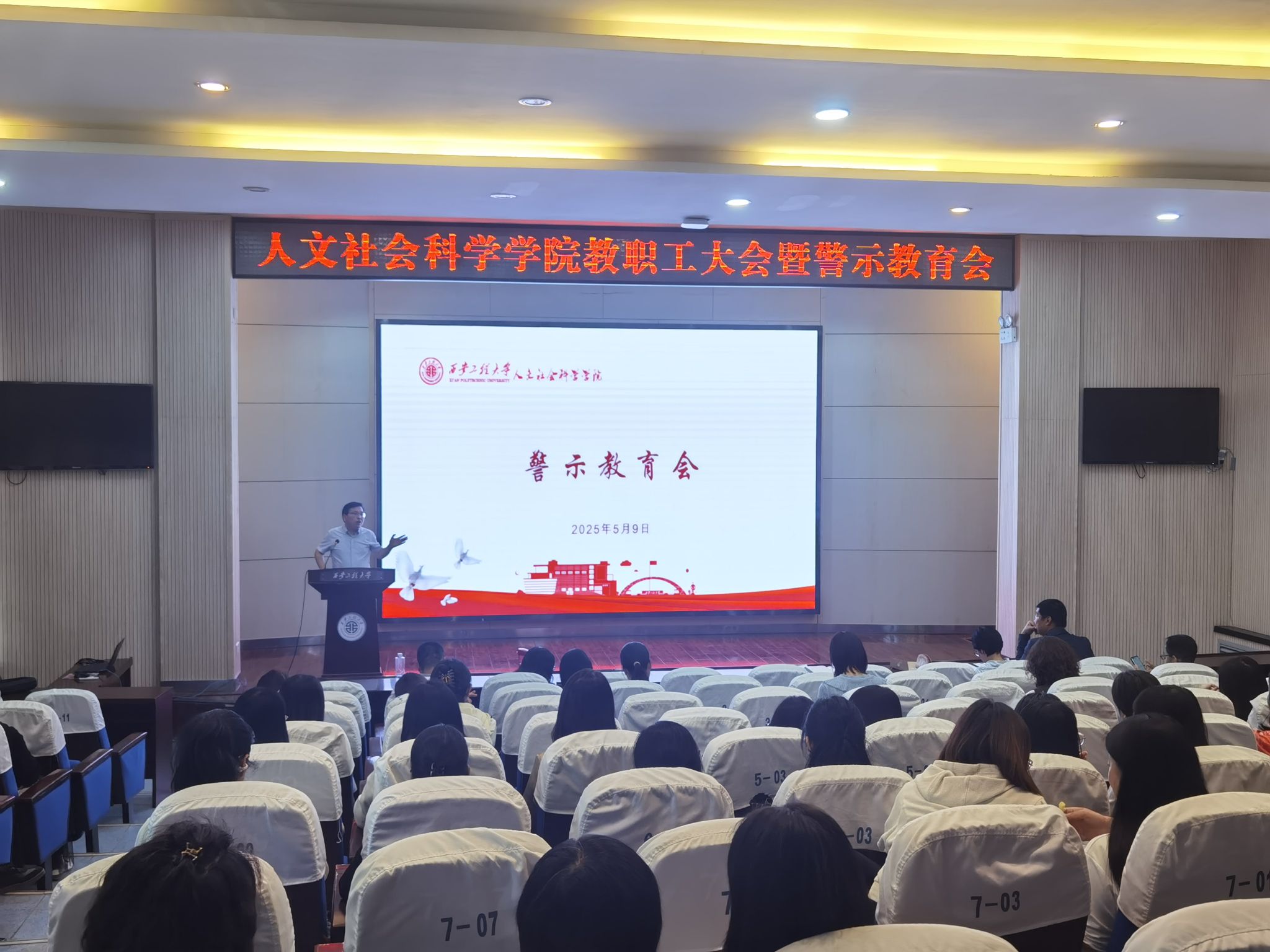 2025年5月9日下午,AC米兰中文在金花校区西纺报告厅召开了学院教职工大会暨警示教育会,学习传达学校相关会议和文件精神,安排部署近期工作,并开展师德师风和警示教育,会议由院长陈莉霞主持,学院领导班子成员和全体教职工参加了会议。