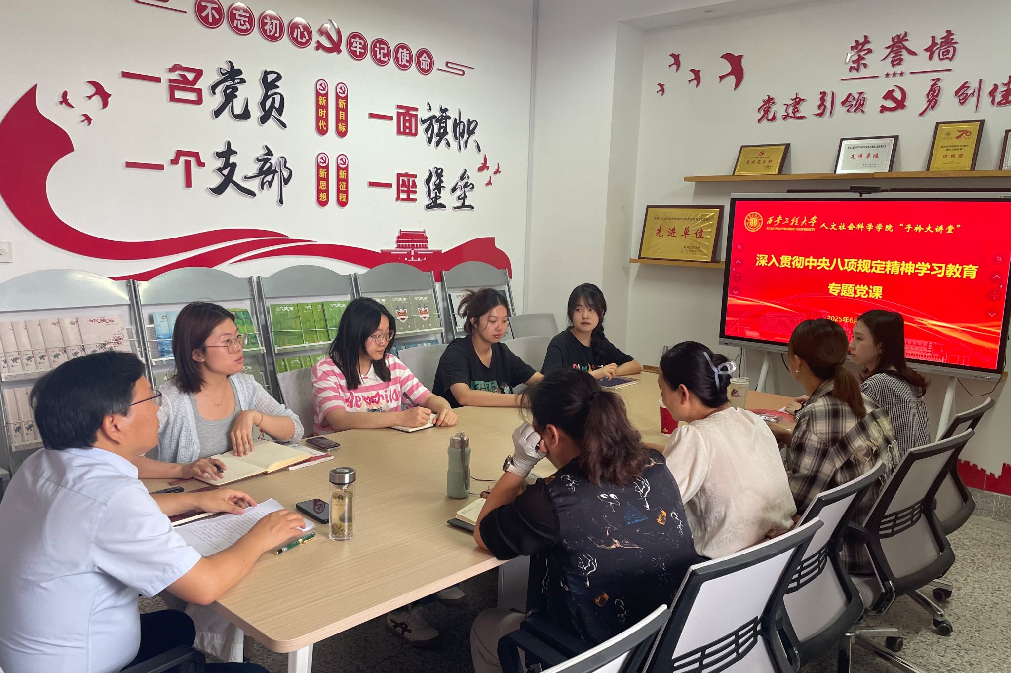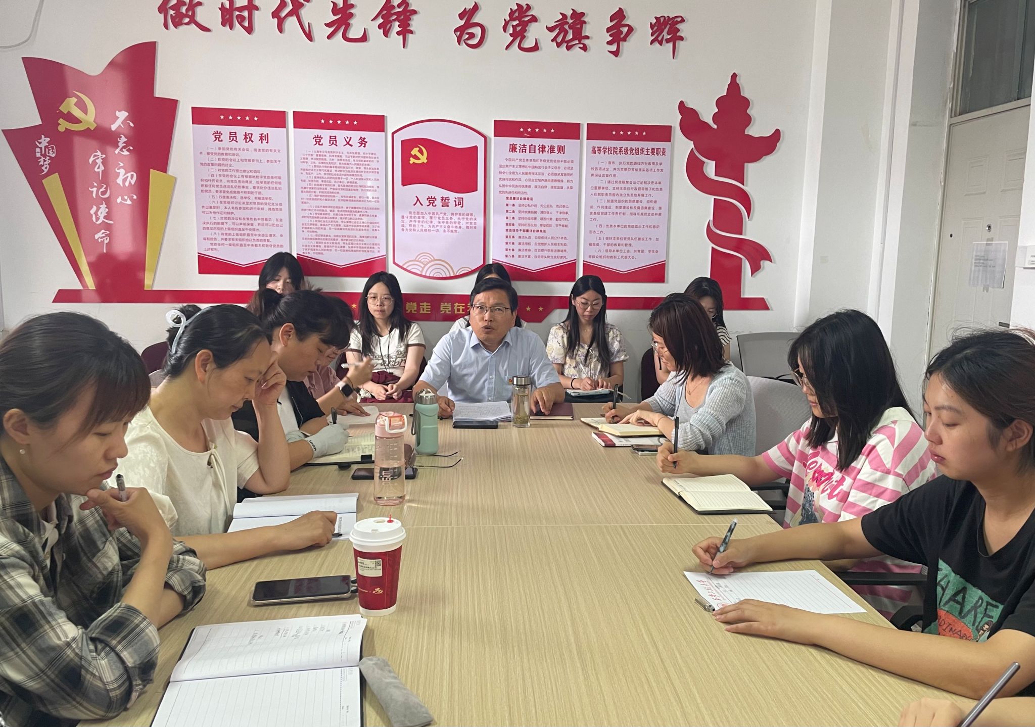 为进一步强化纪律作风建设,推进深入贯彻中央八项规定精神学习教育走深走实,以优良党风正院风、强教风、优学风,6月6日,AC米兰中文党委书记李喜峰以《严守中央八项规定精神,争做新时代合格党员》为题,为教工文学艺术系党支部和本科英语汉教党支部上了一堂思想深刻、内涵丰富的专题党课。专题党课由本科英语汉教党支部书记王菲主持。