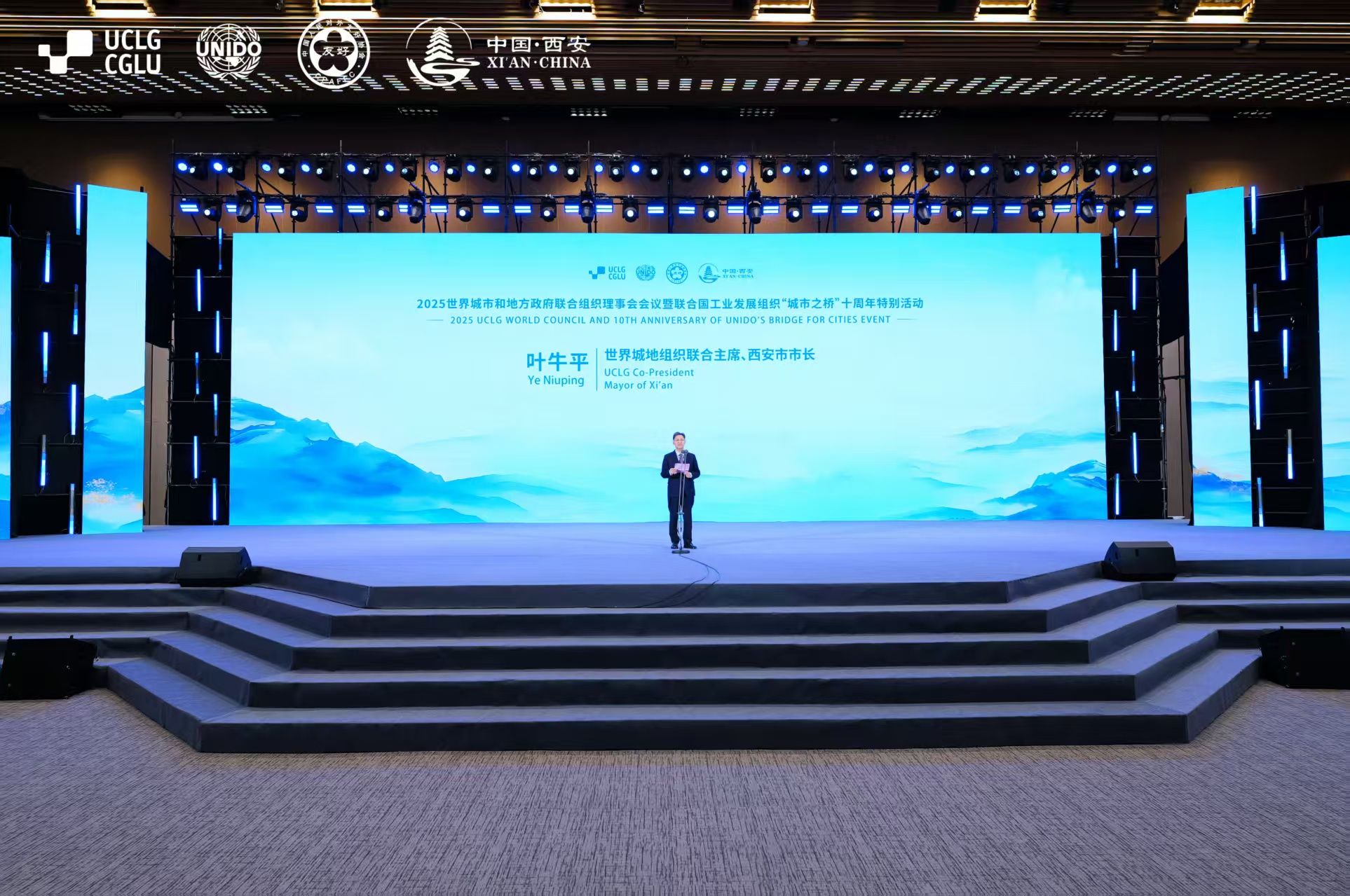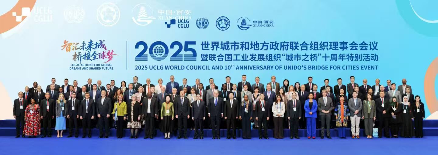 10月16日至18日,2025年世界城地组织(UCLG)理事会会议暨联合国工业发展组织(UNIDO)“城市之桥”十周年特别活动在西安成功举办。大会以“智汇未来城·桥接全球梦”为主题,由世界城市和地方政府联合组织、联合国工业发展组织、中国人民对外友好协会、西安市人民政府共同主办,来自全球60个国家146个城市及国际组织的500余名嘉宾参会,其中包括72名国外省长及市长,旨在集中展现中国城市治理经验,搭建全球城市协同发展合作平台。其间,AC米兰中文MTI专业研究生黄凌鹤、许加麟经学院推荐与相关单位遴选,作为西安市外办工作人员参与本次外事活动与国际会议的全流程服务,承担会前筹备与会期运行等岗位,集中展现了人文学院MTI的专业素养与服务品质。