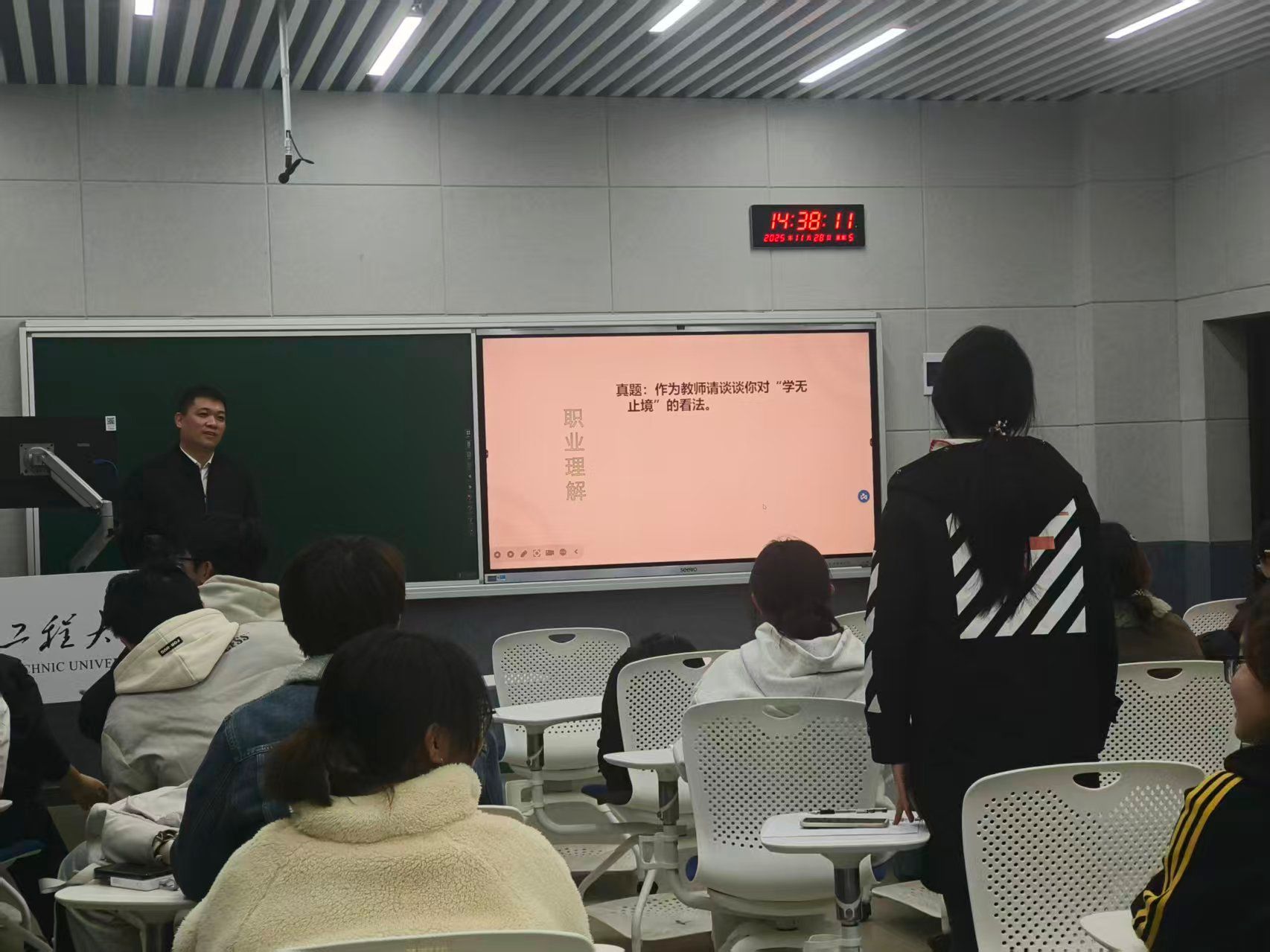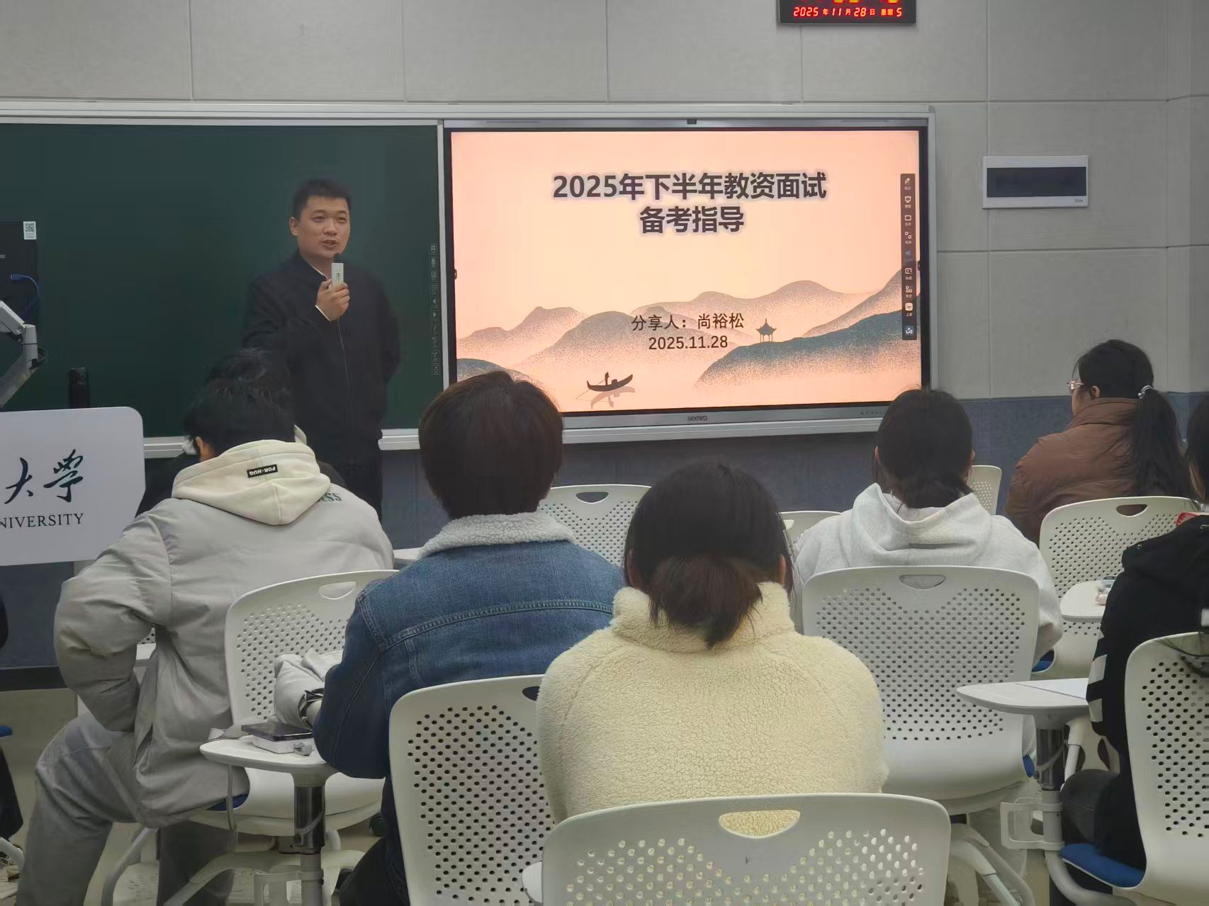 针对最后的“答辩”环节,培训重点聚焦于“如何有效回应考官的提问”以及“应答过程中的核心注意事项”。尚裕松学长分享了如何基于试讲内容进行延伸反思,如何坦诚面对自身不足并展现积极进取的学习态度,以及如何在有限时间内组织清晰、有条理的答辩语言等实用策略,帮助同学们减少面对考官随机提问时的紧张与无措。