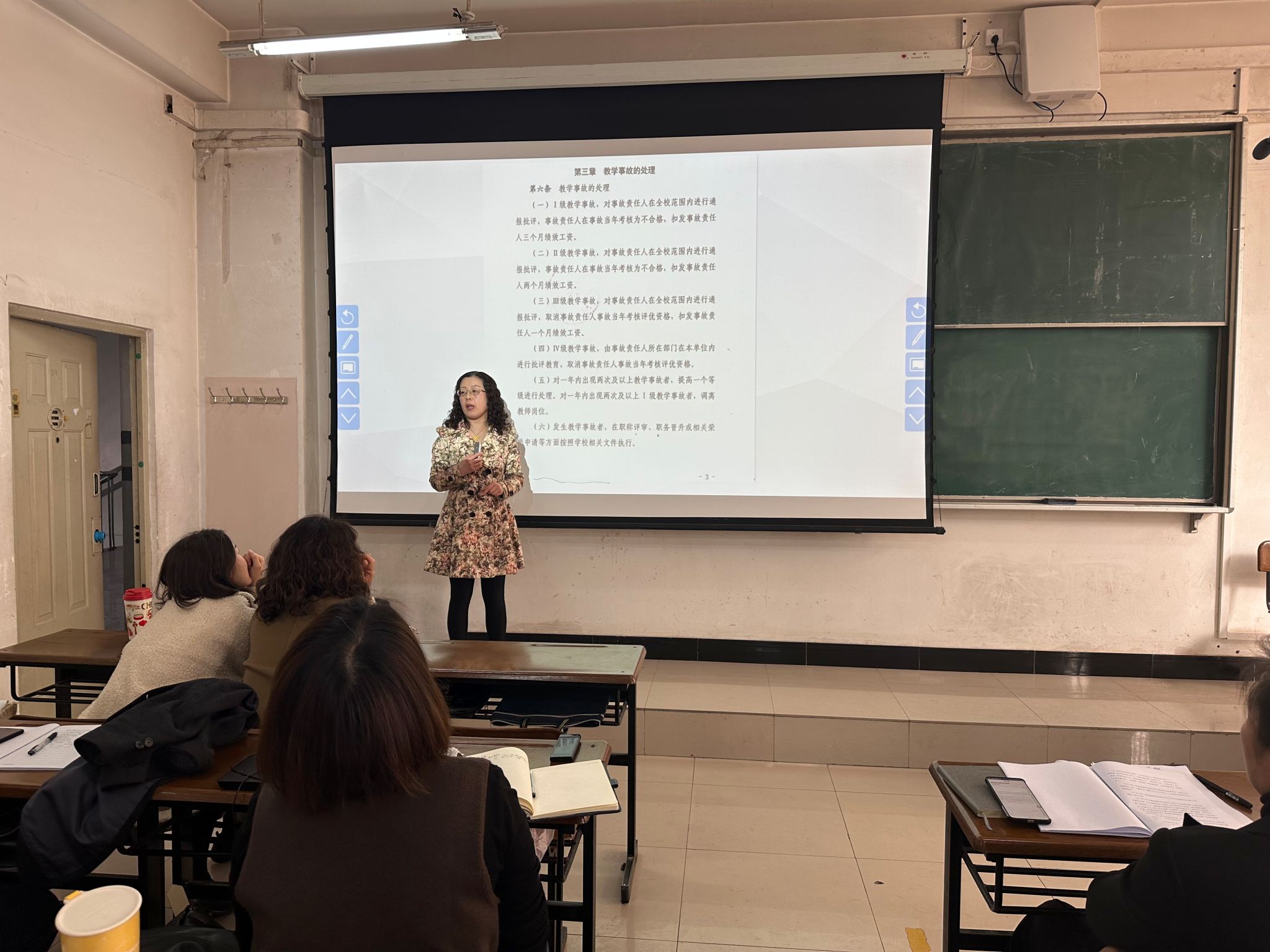 会上,陈莉霞首先按照学校党委《关于认真学习贯彻落实中国共产党米兰中国第三次代表大会精神的通知》要求,向全体教职工传达了学校第三次党代会精神,重点解读了第三次党代会确立的“两步走”的奋斗目标和战略安排、今后五年学校事业发展重点任务,以及实现奋斗目标的“十大工程”。要求全院教职工深入领会学校党代会确立的发展目标和战略布局,把思想和行动统一到第三次党代会精神上来,将学校第三次党代会提出的发展思路和部署要求与学院“十四五”规划、“一院一策”行动计划的全面落实和推动学院高质量内涵发展紧密结合起来,明晰工作思路、推进工作创新。随后,陈莉霞对标陕西省第四批党建工作标杆院系“五个到位”的重点任务,对学院党建工作进行了安排部署。要求各支部,切实贯彻落实好各项工作;结合近期学校有关师德师风重点工作提示,要求全体教职工认真学习教师行为规范,将师德师风建设贯穿教师日常教育教学、科学研究和人才培养的全过程中,牢固树立师德为先的观念,努力涵养教师良好的师德师风。