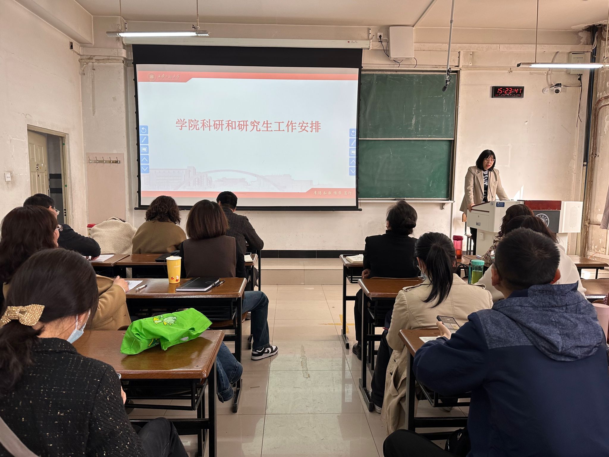 院长张克英从2024年新学期培训分享和学院工作的努力方向两个方面部署学院各项工作。她提出以下几点要求:一要深化教育教学质量,强化师资队伍建设,迎接本科教育教学审核评估。二要深入贯彻落实学校第三次党代会精神,聚焦国家层面、学校层面的教育教学发展的新动态,深入推进学科建设,优化学科布局,推动学科交叉融合,努力提升学院整体科研实力。三要加强学生管理与服务,关注学生培养和就业,落实毕业生就业与2024年研究生招生工作,加大就业指导与服务力度,提高毕业生就业率,同时优化招生宣传策略,提高招生质量。四要稳步推进“一院一策”三年行动计划,要对标对表,积极谋划,严格落实。全体教职工要树立大局意识,共同努力,确保新学期学院各项工作的稳步开展。