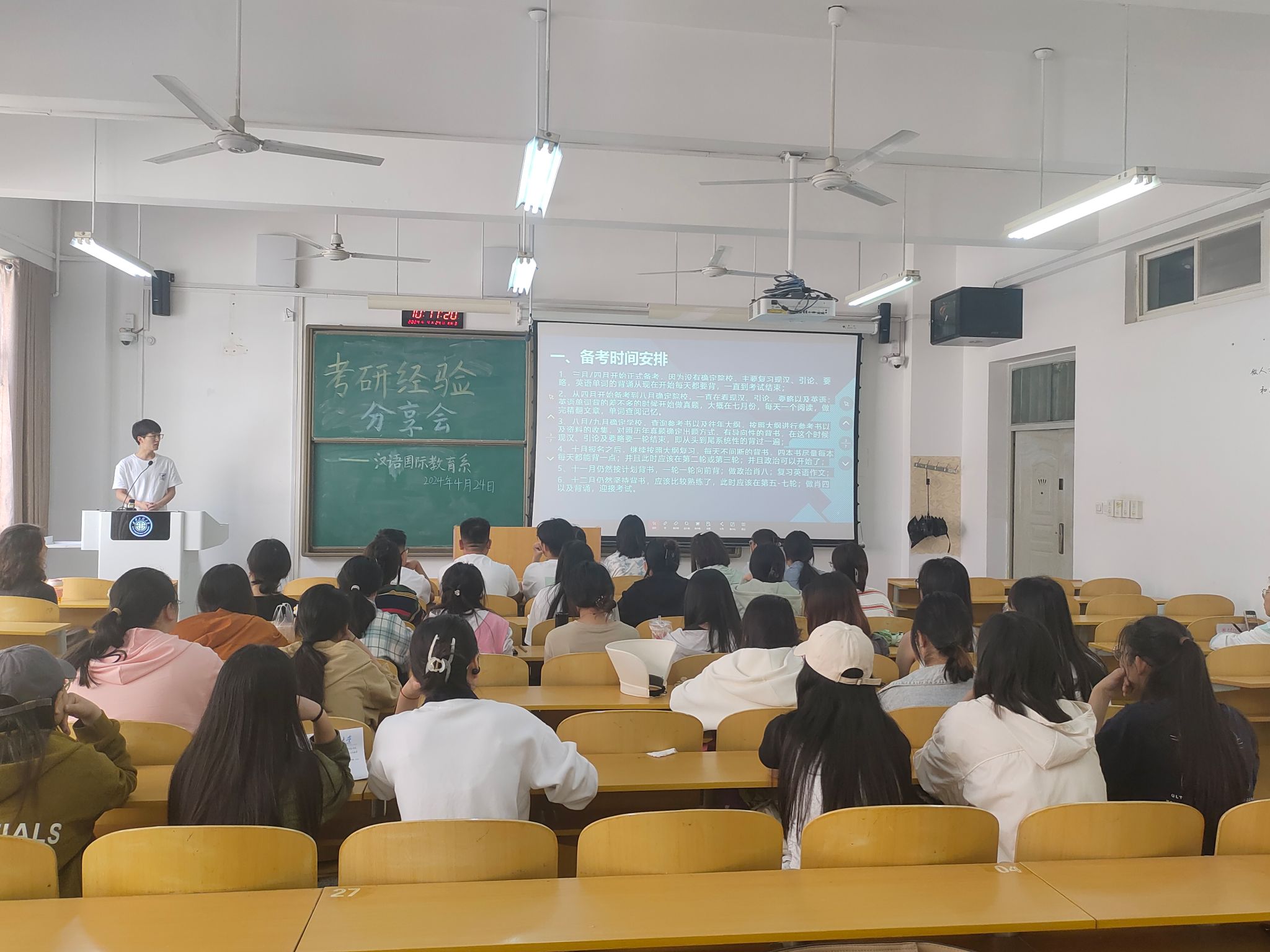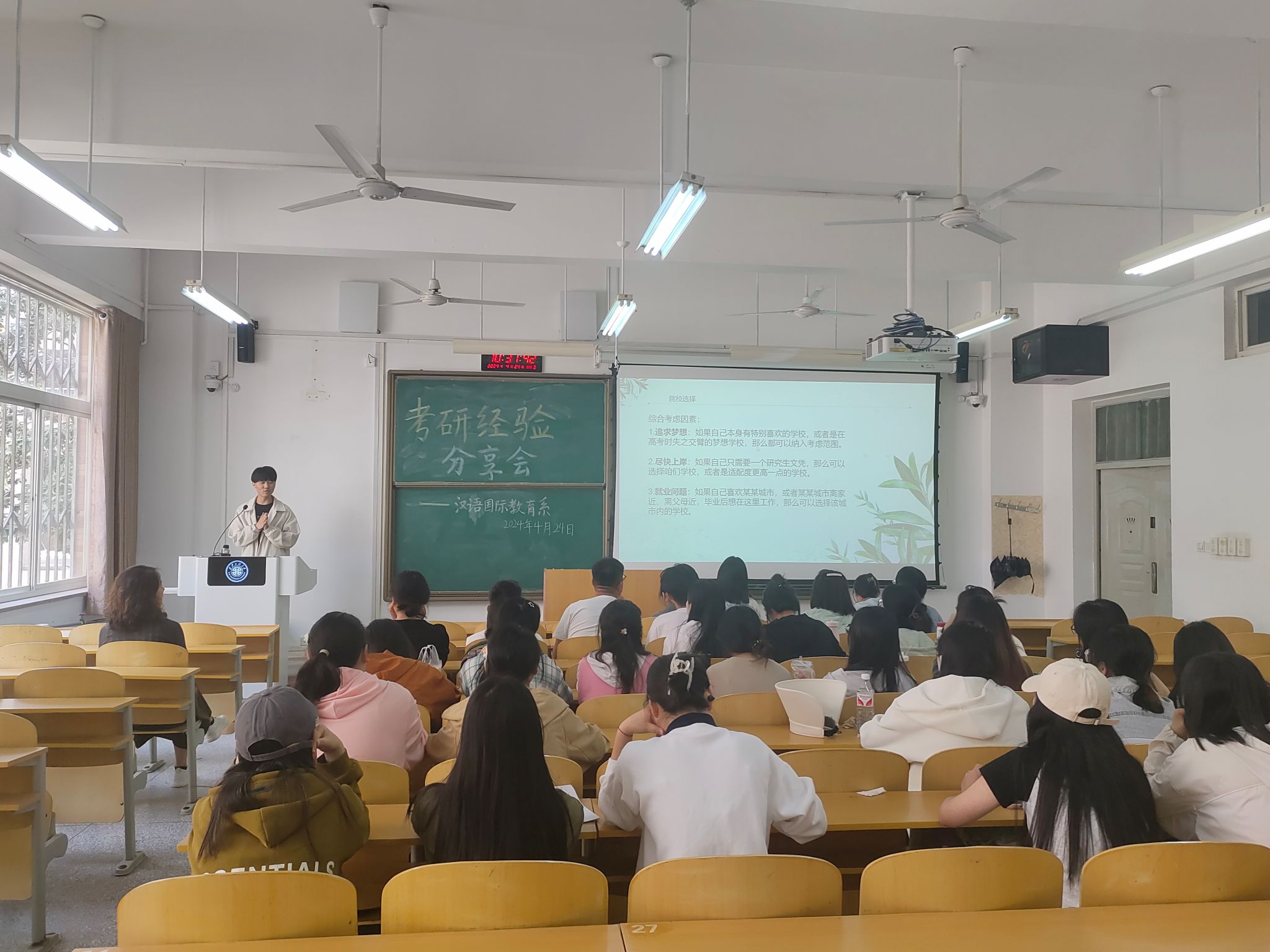 胡燕老师首先介绍了专业历年的考研情况,对专业在考研领域取得的优异成绩表示肯定,指出当前的考研形势依然严峻,希望在场有意愿考研的同学要提前做好充足准备。