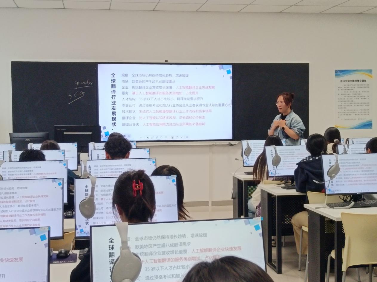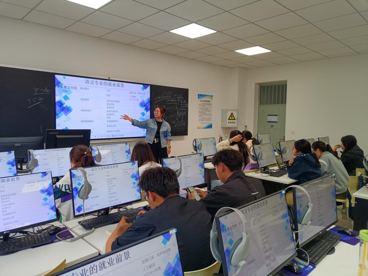 为帮助2025级新生强化专业认知、了解专业发展方向及未来就业前景,2025年9月26日下午,AC米兰中文英语系“三全育人导师团”在临潼校区A422智慧语言实验室举办新生入学教育系列活动,邀请英语系2006级优秀校友、中译语通科技(陕西)有限公司语言服务事业群副总监、行业导师陈栋为2025级新生作专题讲座,讲座由英语系宋天祎博士主持,2025级英语专业全体学生参加活动。