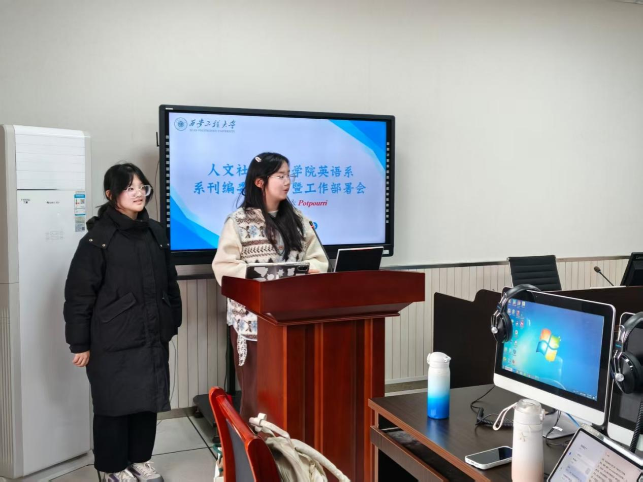 会议伊始,主持人瞿福榕代表编委会向新加入的编委成员致以热烈欢迎。随后,24级研究生编委与25级本科生编委依次登台自我介绍,发言中满含对系刊工作的热忱与期待,充分展现了青年学子的蓬勃朝气。紧接着,23级主编瞿福榕详细介绍了英语系系刊《POTPOURRI》与《I AM A SPEAKER》的办刊定位与栏目设置:《POTPOURRI》涵盖名家名作、文化速递、娱乐氧吧、翻译园地、写作园地、毕业季六大板块,内容兼具深度与趣味性;《I AM A SPEAKER》以征集全系优秀演讲稿为核心,为学子搭建语言表达展示平台。两本系刊均致力于打造优质内容矩阵,已成为英语系学子交流学术、展现风采的重要阵地。随后,23级副主编邓雯简要汇报系刊阶段性工作进度,并对后续工作推进提出明确要求。