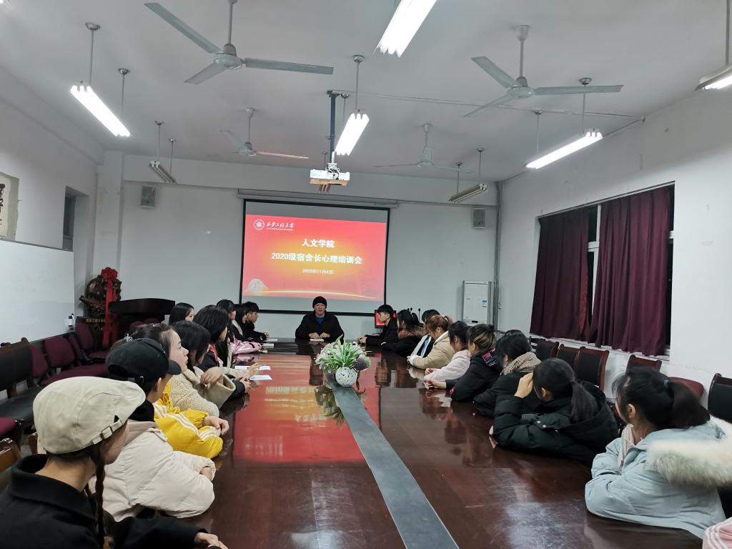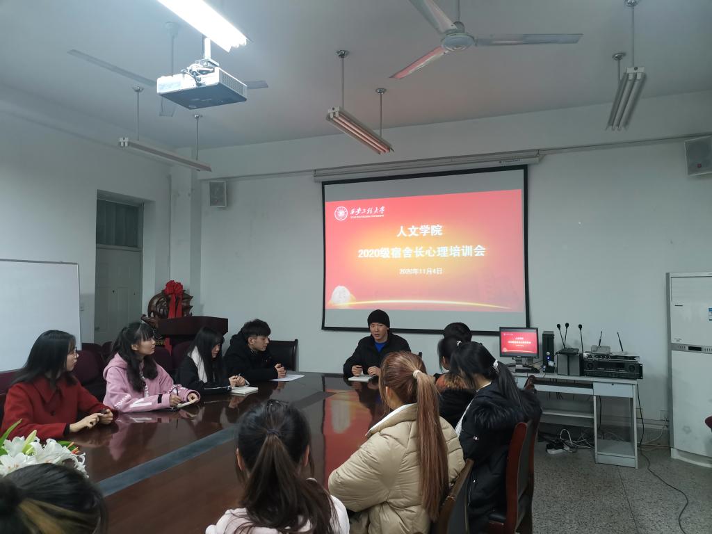 为普及心理健康知识,提高学生对心理健康的关注重视,促进其树立正确的心理健康观念,并掌握基本的心理调适方法,同时进一步发挥宿舍长在心理健康工作中的重要作用,2020年11月4日,人文学院于人文管理楼326会议室开展了以“大学生常见心理问题分析及讨论”为主题的宿舍长心理健康专题培训会。本次培训由学院心理辅导员刘杨扬作为主讲人,为2020级全体宿舍长分享大学生常见的几类问题。