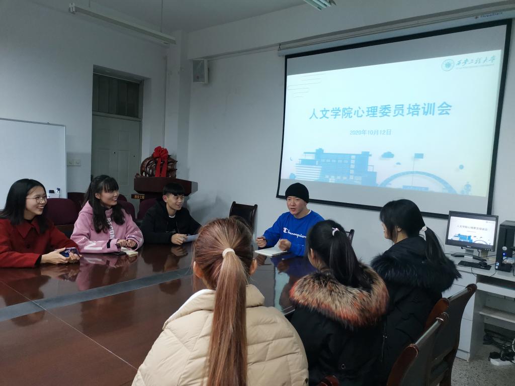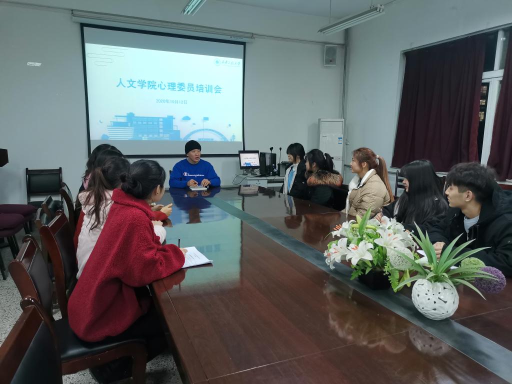 为了深入推进我院大学生心理健康教育工作,切实发挥心理委员朋辈互助的积极作用,10月12日晚,人文学院于人文管理楼326会议室,由心理辅导员刘杨扬对学院全体心理进行了专题培训。