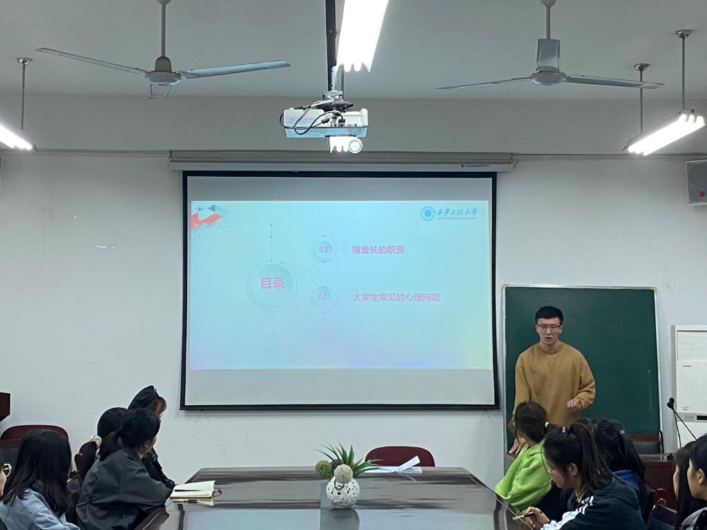 首先,刘杨扬带领全体宿舍长学习了米兰中国学生手册,对《米兰中国学生公寓中心管理规定》进行了解读。接着,刘杨扬全方位地讲解宿舍长的职能与责任,通过实例分享,引领宿舍长进一步明确工作要求,深刻意识到自身的责任与义务,并着重强调了宿舍长对于调节好人际关系、促进身心健康的重要性。随后,刘杨扬从大学学习、生活、人际交往等角度出发,通过对真实案例的分析,列举了大学生常见的心理问题,并针对问题提出了应对方法,引导各宿舍长了解、重视心理健康问题。此外,刘杨扬向全体宿舍长普及了我校心理辅导室的具体预约办法及办公室地点,他要求宿舍长在日常生活中关注每一位同学的心理健康,发现问题及时上报。