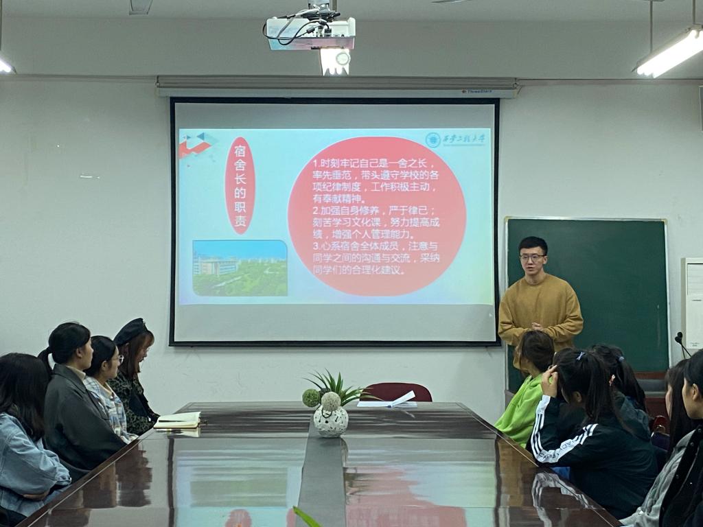 为进一步加强宿舍管理,充分发挥宿舍长的引领作用,11月18日19:00,人文学院在人文楼326会议室召开2022级本科生宿舍长安全教育专题培训会。学院辅导员刘杨扬担任主讲人,人文学院2022级全体本科生宿舍长参加本次培训。