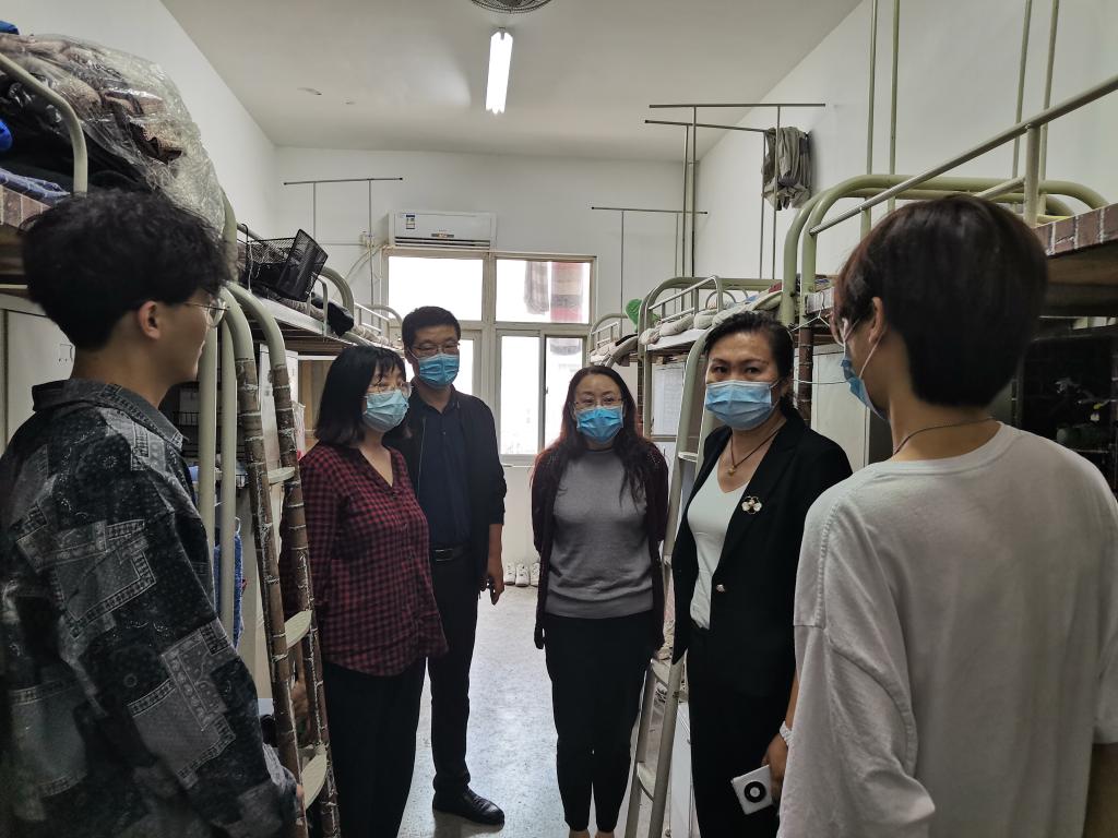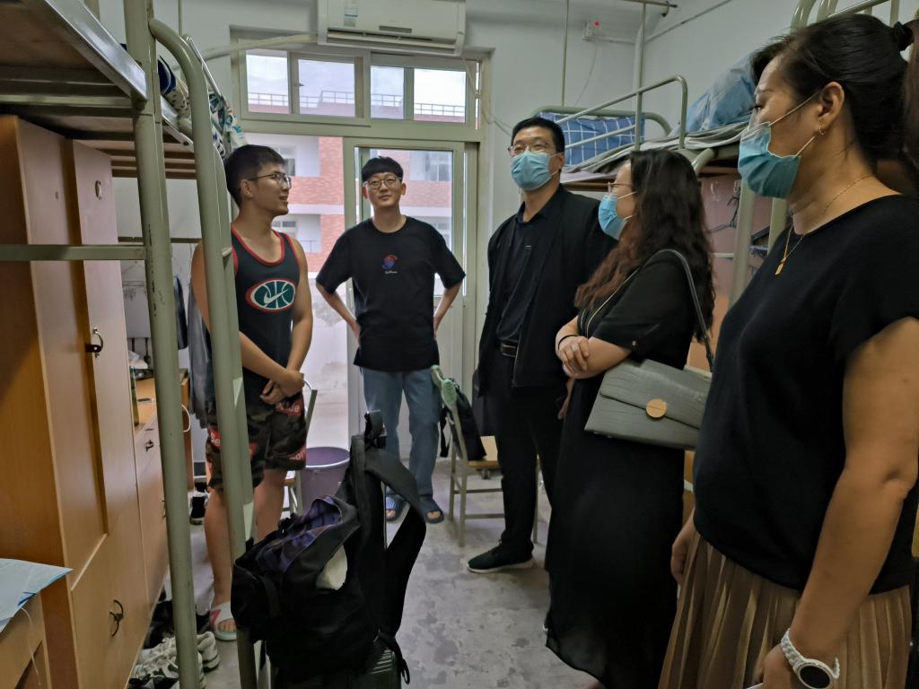 截至9月25日,人文学院共计614名学生报到、返校,考虑线上上课所面临的的实际困难,为切实落实学校要求,在服务学生中扎实推进作风建设,学院党委书记陈莉霞、副院长(主持工作)张克英、党委副书记赵立涛以及全体辅导员第三次走进宿舍楼,走访所有本科生、研究生宿舍,了解新生适应情况和上课情况;在老生宿舍分头提醒、督促学生认真上课,对学习态度不认真的同学现场给予纠正;同时,每到一间宿舍,他们都会提醒同学们注意饮食,做好疫情防控工作要求,努力克服困难,高质量完成在校期间的学习任务。