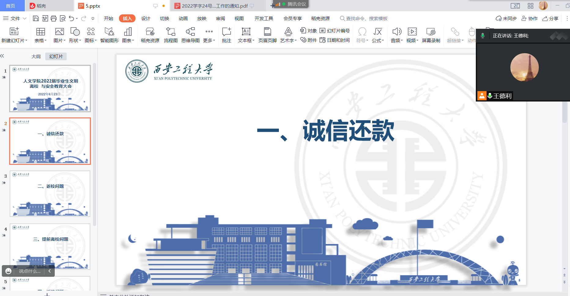 为营造和谐、温暖、有序的毕业氛围,确保学院毕业生文明离校,教育引导毕业生树立正确的思想认识和价值取向,增强毕业生归属感。2022年6月23日晚,人文学院通过腾讯会议召开2022届毕业生文明离校与诚信教育大会。学院2018级本科毕业生和2019级研究生毕业生181人全部参会。