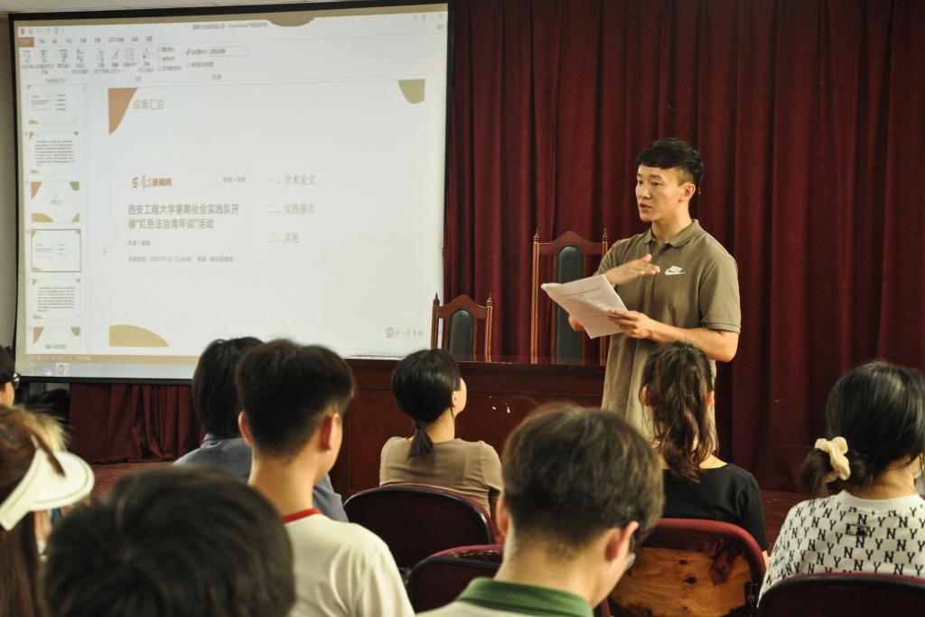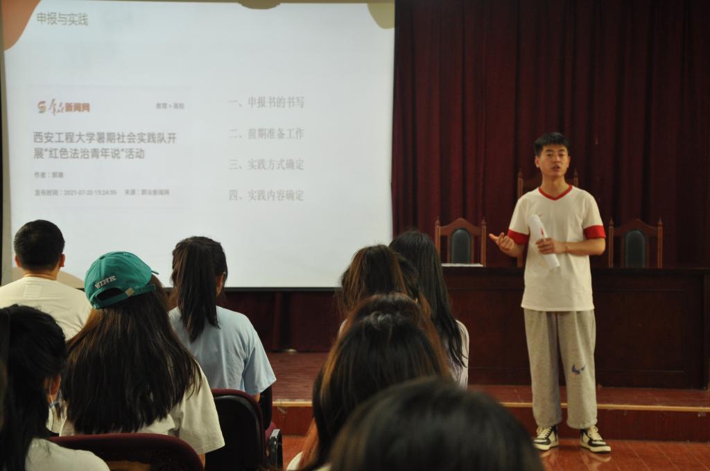 随后,往届社会实践优秀代表——2019级法学专业学生丁一博为大家带来了实践分享。他深入浅出地分享了实践团队的前期准备、实践过程及后期总结的经验,特别强调了选题的重要性,对团队成员的组成、实践项目的设计、宣传、分工等方面提出了宝贵建议,对同学们进行了精准的指导。