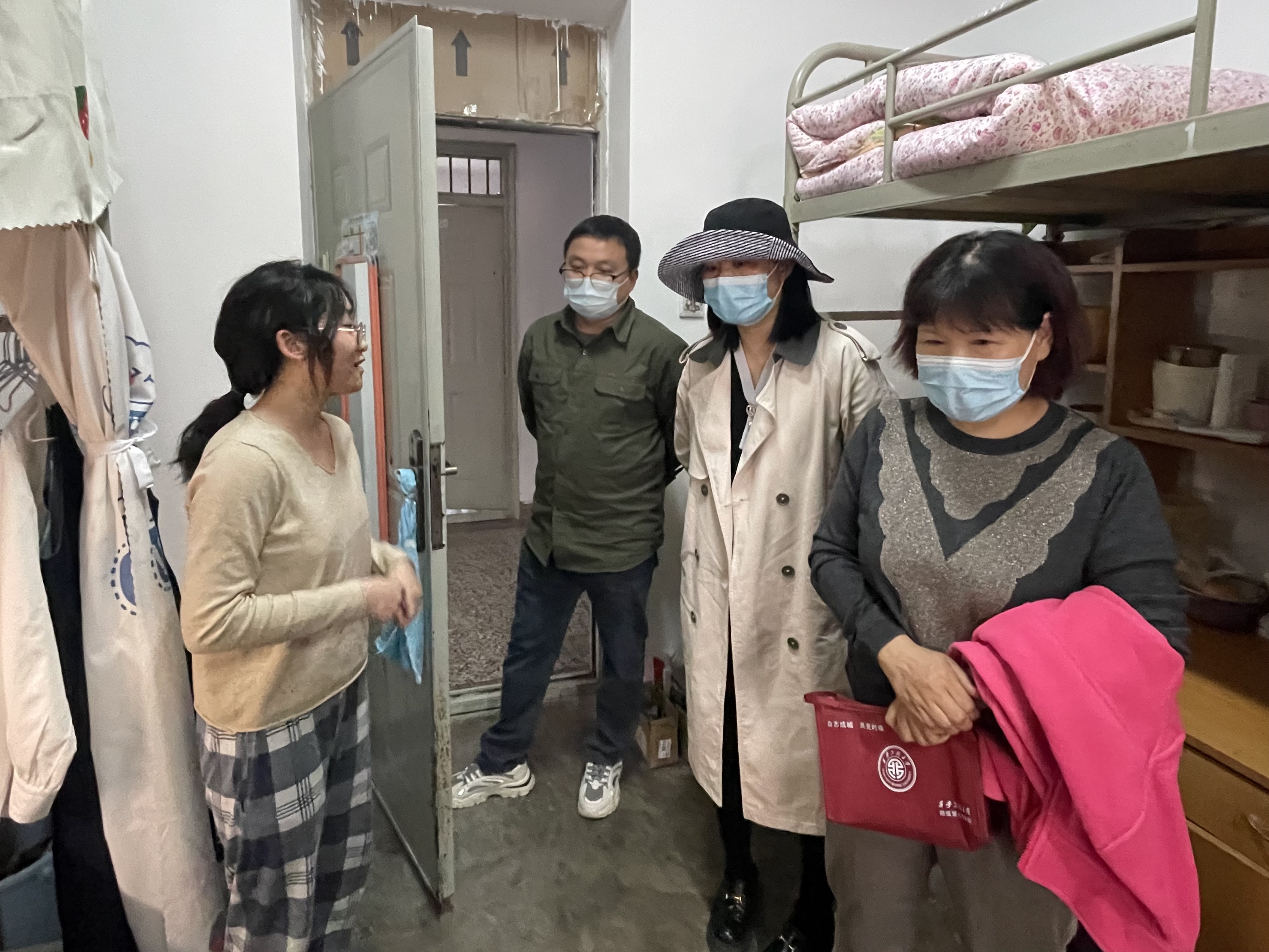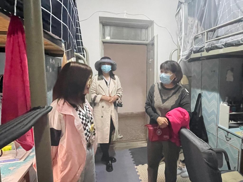 在走访过程中徐利兰对辅导员强调,要加强人文关怀,把学生放在第一位,及时解决学生们在生活和学习上的困难,让学生们感到来自学校和老师的关怀与温暖,用行动做到为学生办实事。在与同学们互动过程中,不断叮嘱同学们要高度重视并配合学校的疫情防控工作,自觉遵守学校疫情防控管理制度,非必要不出市,按时打卡,严格外出,与舍友互相关心,互相帮助,多和家人视频通话报平安。同时也要注意饮食,做好个人防护,注意锻炼身体,高质量完成在校期间的学习任务。同学们也纷纷表示会积极配合学校做好疫情防控下的相关工作,注意宿舍卫生,合理安排体育锻炼活动,以积极的心态和健康的体魄保证自己的学习和生活。