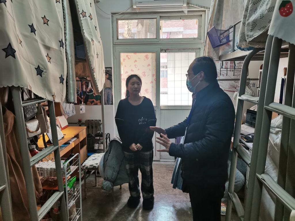 1月10日,是我校封闭管控期间开展新学期线上教学的第一天。人文学院院长胡伟华带领全体辅导员深入宿舍看望慰问学生并查看学生开课准备情况。