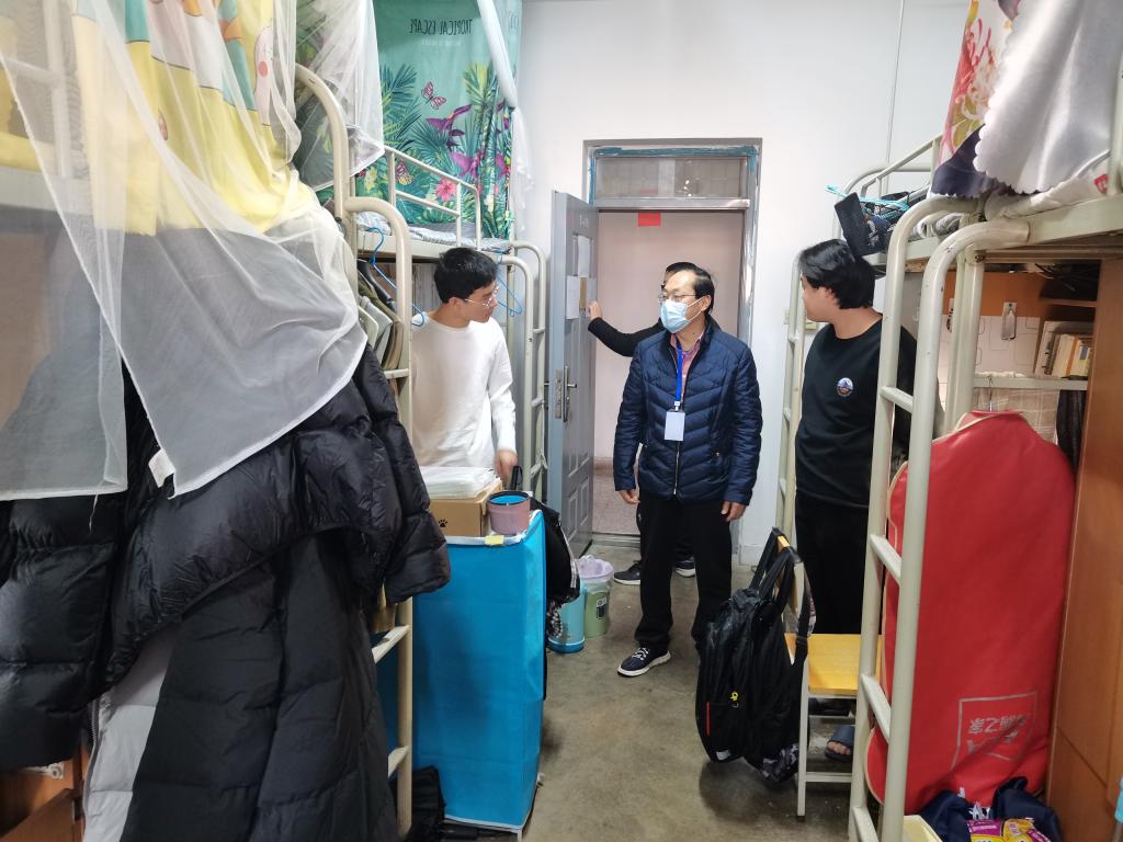 在学生宿舍,学院领导看到同学们课外学习、休闲放松、体育锻炼有条不紊,情绪安稳,充分肯定了同学们在疫情防控形势下积极配合封闭管理的现象,鼓励大家从自身卫生、宿舍卫生做起,齐心协力筑牢校园疫情防线。