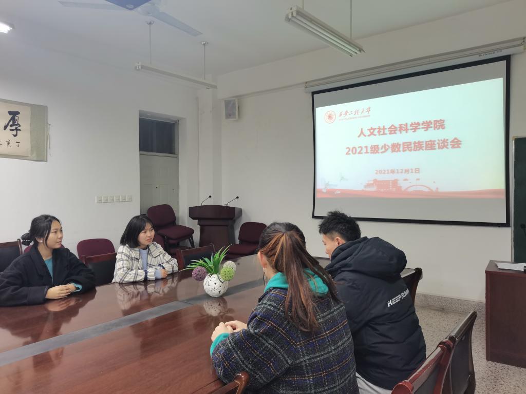 为强化民族团结教育,铸牢中华民族共同体意识,关心少数民族新生入校以来的学习和生活情况,解决他们入校来的困惑和问题,帮助少数民族同学更好融入校园生活,人文学院于12月1日在人文楼326会议室举行了2021级少数民族新生座谈会。人文学院少数民族辅导员刘杨扬、高年级学生代表曹珈媛与2021级两位少数民族学生参加了此次活动。 会议伊始,刘杨扬向参加此次座谈会的同学表示热烈欢迎。与会同学依次发言表达了对学校关爱的感谢,表示在学校老师和同学们的帮助下很快适应了大学生活,并分享了参加社团组织活动的收获,提出了在学习上遇到的一些问题。随后,高年级学生代表曹珈媛分别在参加学科竞赛和“如何为考研、保研做准备”两个方面分享了相关经验和技巧。最后,刘杨扬老师总结发言,鼓励学生不畏学习困难,努力攻克学习难点。刘老师指出:“当代青年恰逢“两个一百年”的交替时代,希望同学们不忘初心,明确青年人的使命担当,学好专业技能为社会、时代发展贡献自己的力量!” 此次座谈会增强了学院与少数民族学生的沟通和交流,学院将全力为学生们的成长成才保驾护航,不断加强和改进少数民族学生教育管理工作,把党和国家的关心送到学生心坎里,让中华民族共同体意识深入人心。