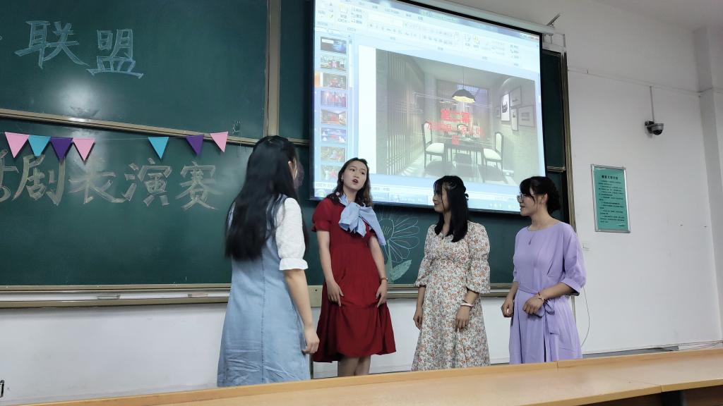 为丰富校园文化、营造良好的外语学习氛围,帮助同学们提高口语表达能力、增强自信,在英语系三全育人导师团的指导下,人文学院外语联盟于5月14日在教学楼A栋举办了外语话剧表演赛。