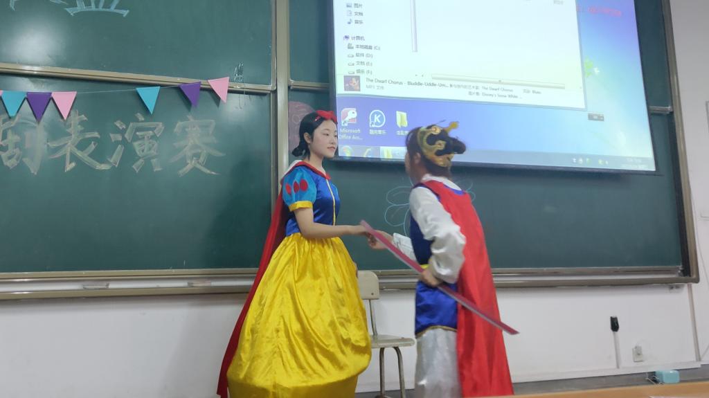 同学们积极活跃、发音标准,表演活灵活现、引人入胜。《白雪公主》和《反转灰姑娘》组表演生动形象,展现了童话的魅力;《白蛇传》用英语表达了经典的爱情故事;《傲慢与偏见》立意深刻,为文学名著赋予动态;《狐假虎威》颇具创意;《后妈的茶话会》节奏紧凑,引人注目;《机场偶遇记》韩语小剧场,独树一帜、令人称赞。