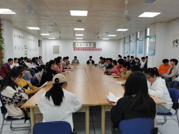 4月28日,我校举办第44期“共读一本书”活动,师生共读红色经典《可爱的中国》。本次活动由我校宣传部、学工部、校团委、图书馆主办,人文学院子衿文学社承办,图书馆党支部书记、馆长谷秀洁等7名馆员和40余名学生参加了交流。