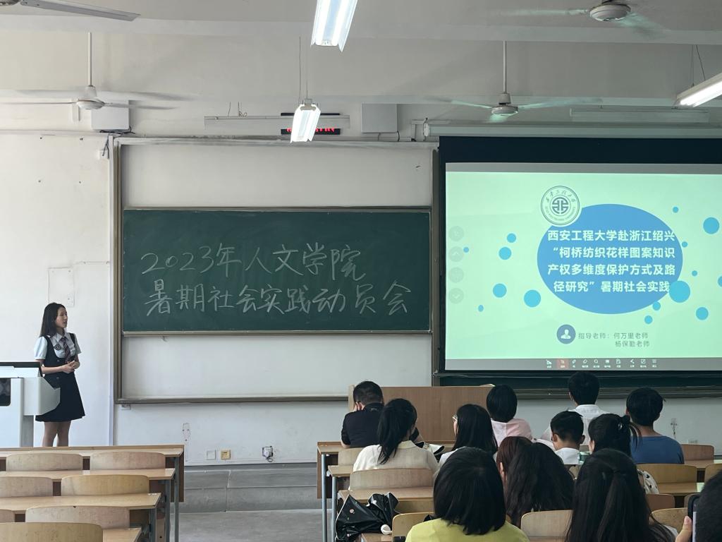 我院社会实践优秀代表21级法律硕士王晓莉为大家带来了实践分享。她依托米兰中国赴浙江绍兴“柯桥纺织花样图案知识产权多维度保护方式及路经研究”暑期社会实践项目,全方位立体的讲解了团队实践的前期准备,实践要求,实践意义等。她向同学们分享了参加心得,号召同学们进一步提升自身适应社会、服务社会的能力,积极投身到暑期社会实践中去。